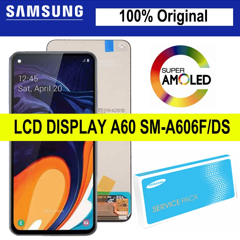 ЖК-дисплей 100% 'для SAMSUNG Galaxy A60 SM-A606FDS, 6,3 Оригинальный сенсорный экран с дигитайзером в сборе, дисплей с деталями для ремонта