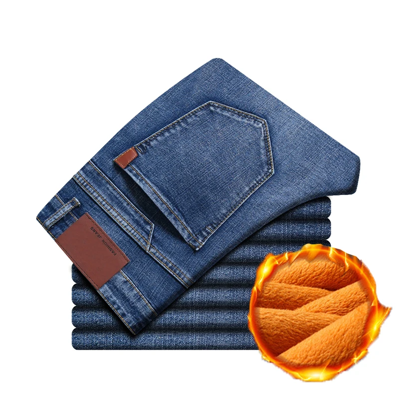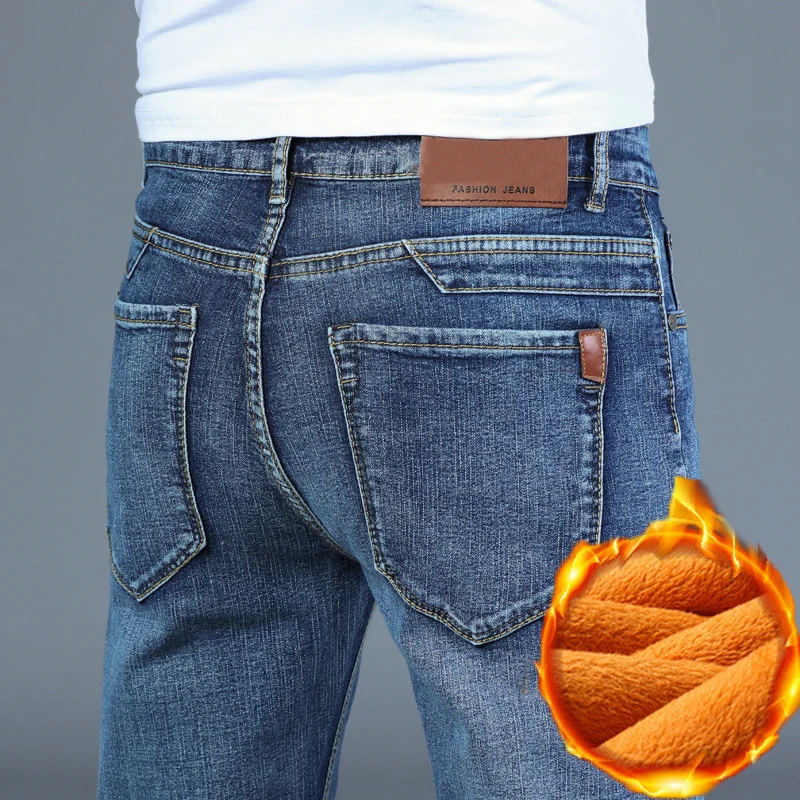Мужские зимние джинсы, серые зауженные эластичные плотные вельветовые брюки, теплые джинсы, повседневные флисовые брюки для мужчин, 2020