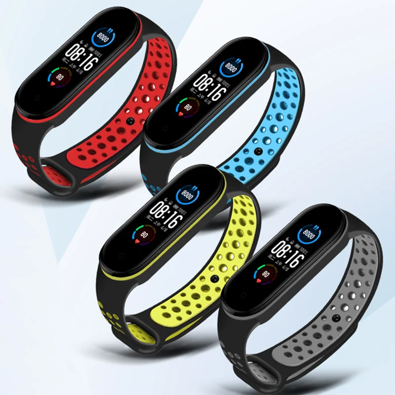Дышащий ремешок для Mi Band 3 4, браслет на запястье, аксессуары, смарт-браслет, спортивный силиконовый ремешок для Mi band4, ремешок