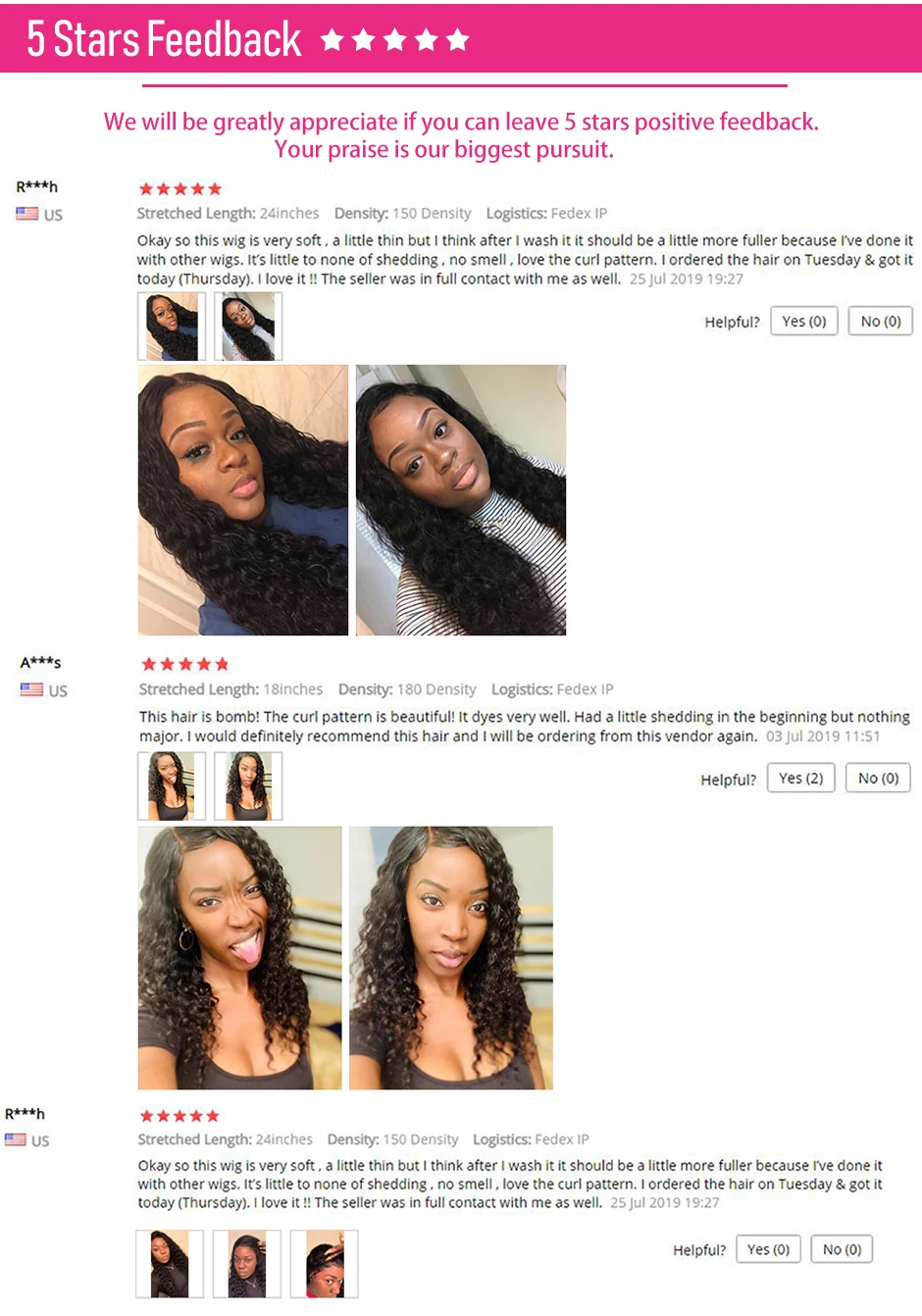Волосы абсолютно великолепны. Это единственная компания, к которой я обращался за глубокими волнистыми волосами. Я использую это для своих личных париков и для моих клиентов, и они абсолютно в восторге. Я заказывал эти волосы много раз и у меня не было никаких проблем. И всегда хорошее качество. И Я даже не испытал никакого падения, запутывания или чего-либо еще. Потрясающие волосы по цене!