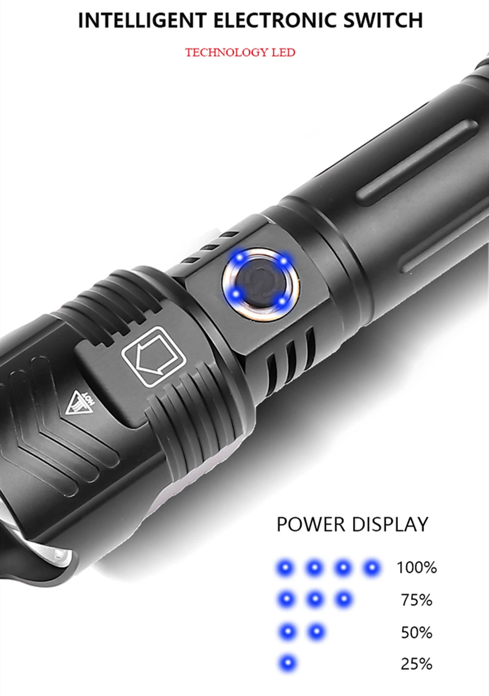 Модель шарика лампы: XHP90.2 LED/XHP100 Материал линз: оптические линзы Рабочая передача: 5 передач (сильный, средний, слабый, быстро мигает, медленно мигает) Размер продукта: 16,7x4,6x3,5 см/19x4,6x3,5 см (длина после масштабирования) Применимые Аккумуляторы: 26650x 1/18650x 1/AAAx3 (без батареек) Степень водонепроницаемости: IPX4 Мощность продукта: 35 Вт Материал изделия: алюминиевый сплав Рабочее напряжение: 3,7 в Цвет продукта: черный Прямая зарядка: Прямая зарядка через USB (с двойным интерфейсом выхода и входа) Масштаб: Телескопический фокус Положение переключателя: Средний кнопочный переключатель Отображение мощности: 4 светодиодный ных индикатора, каждый светильник представляет 25% мощности Вес нетто продукта: 234 г (один фонарик) Аккумулятор: 3,7 в 26650 аккумулятор 5000 мАч