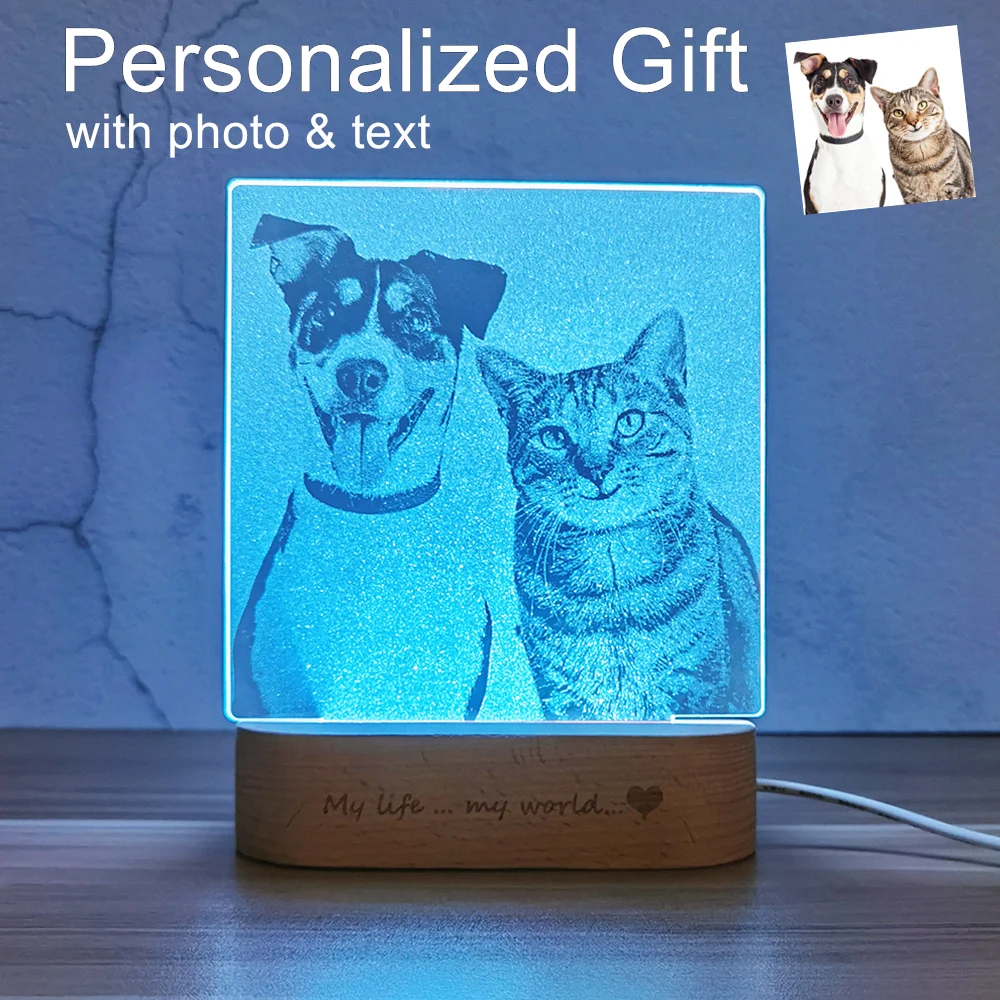 Пользовательские фото и текст хрустальная лампа USB Led персональный ночной Светильник рождественские подарки на день Святого Валентина украшение на кровать Прямая поставка