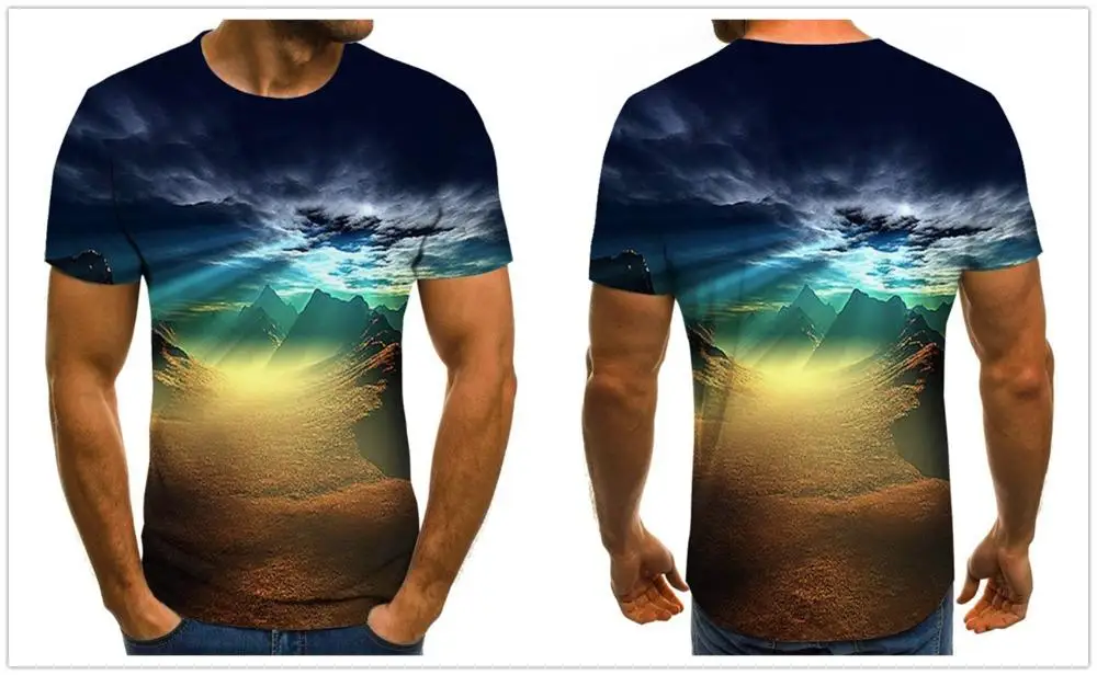 2021 футболка с 3D принтом звездного неба Мужская Летняя Повседневн...