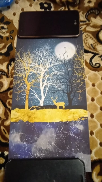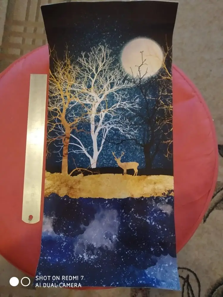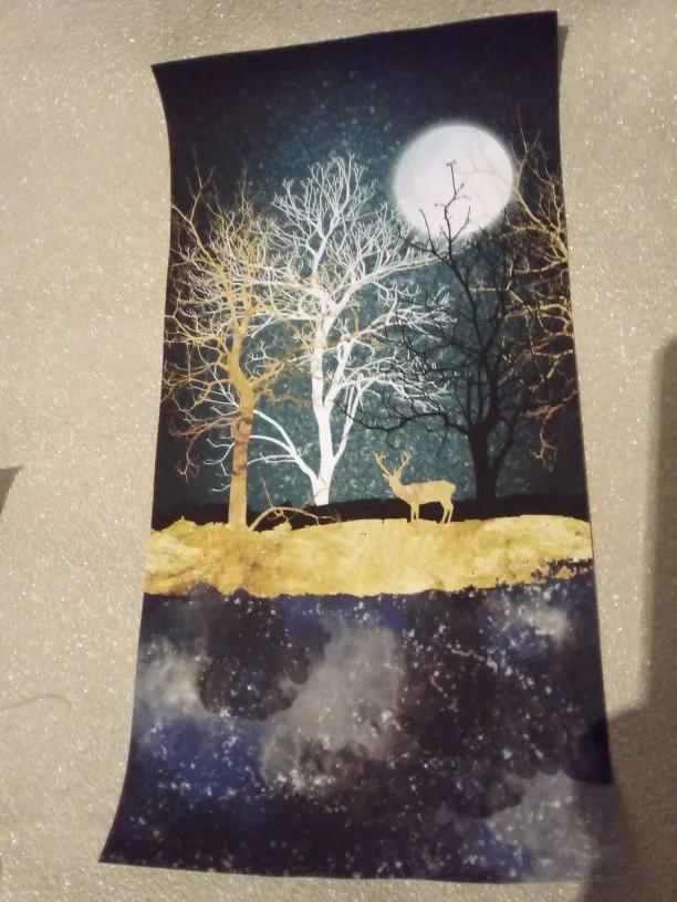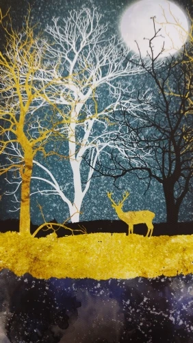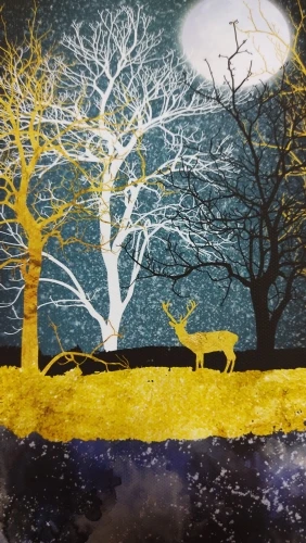 Картина на холсте, луна, дерево и олень, 6-5 дюймов