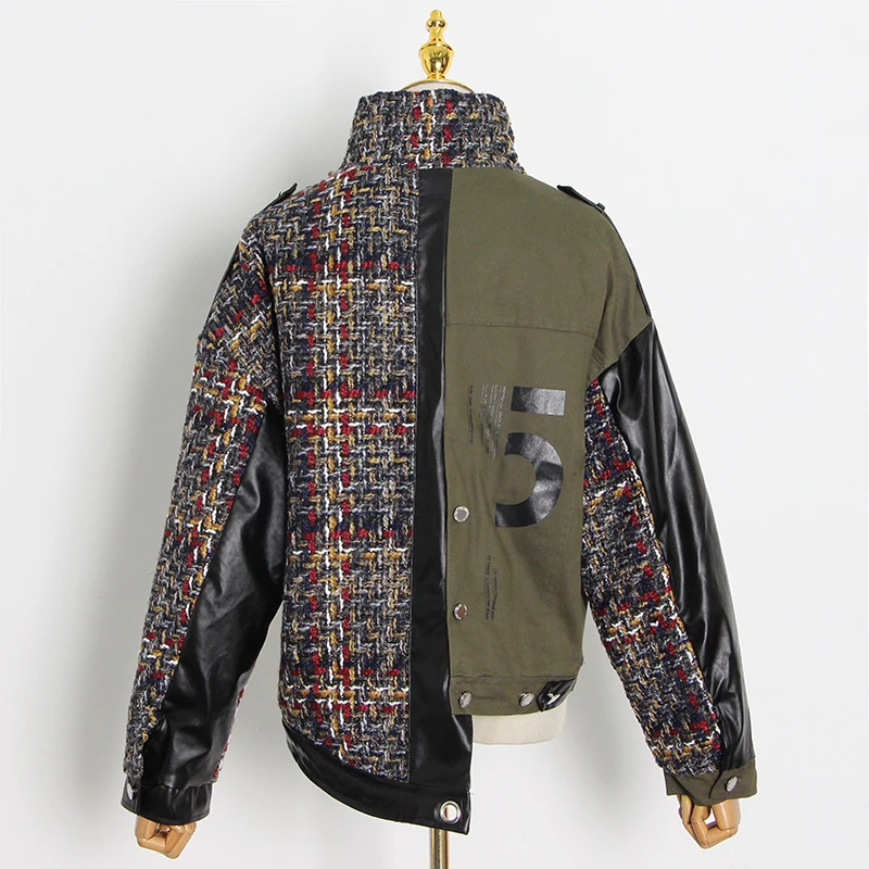 Женская куртка из искусственной кожи TWOTWINSTYLE, повседневная куртка с высоким воротником и длинным рукавом, осень 2020