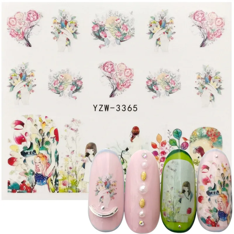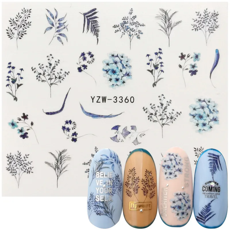 Наклейка для ногтей с цветами и листьями, 1 лист