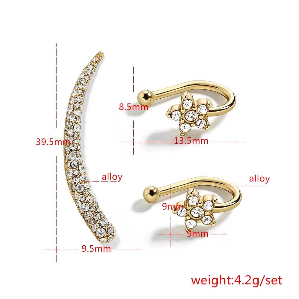 3 шт.компл. Модные Винтажные серьги-клипсы для ушей с кристаллами д...