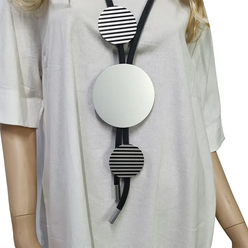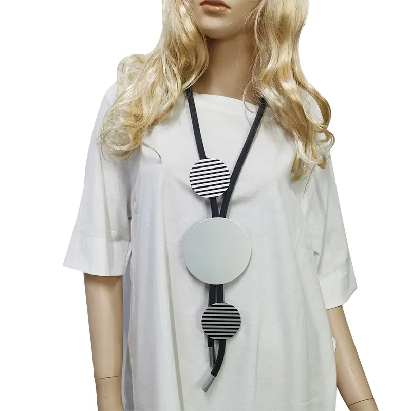 Новое Стильное Черное Кожаное резиновая подвеска длинное ожерелье для женщин, элегантные круглые в полоску декоративные ожерелья, текущие женские украшения