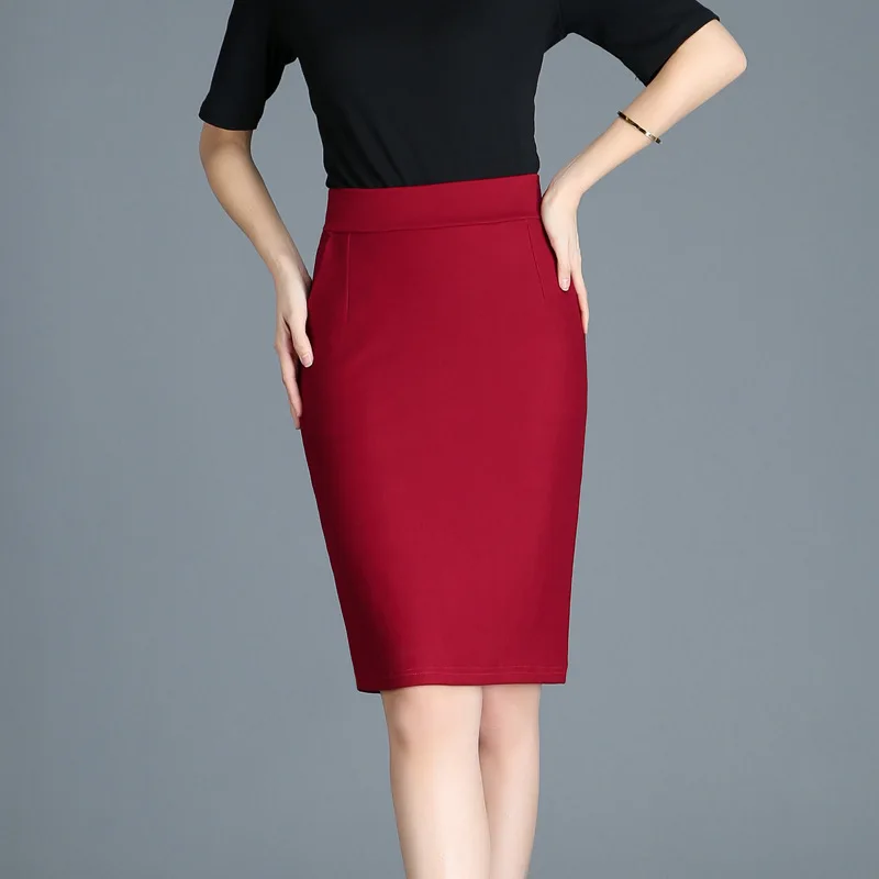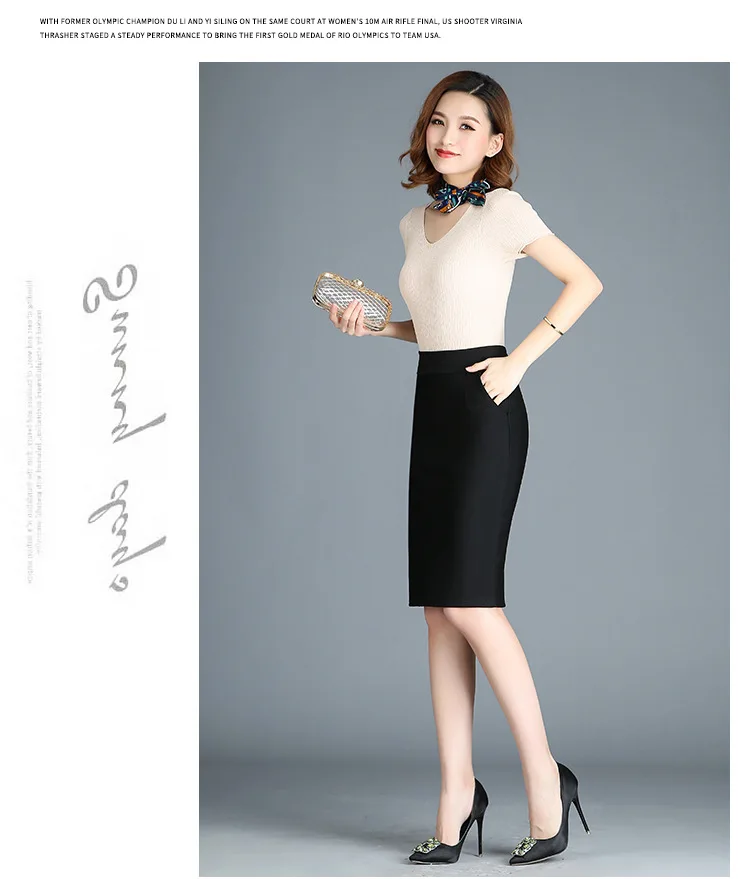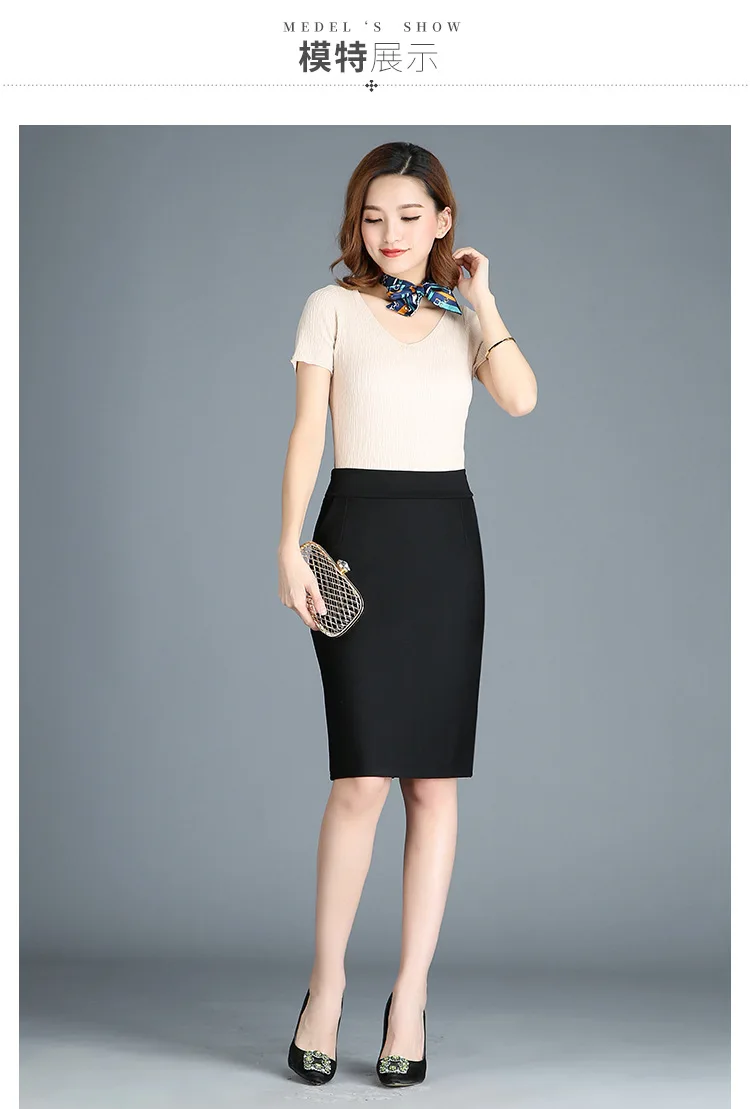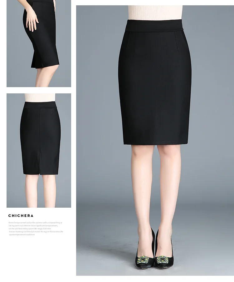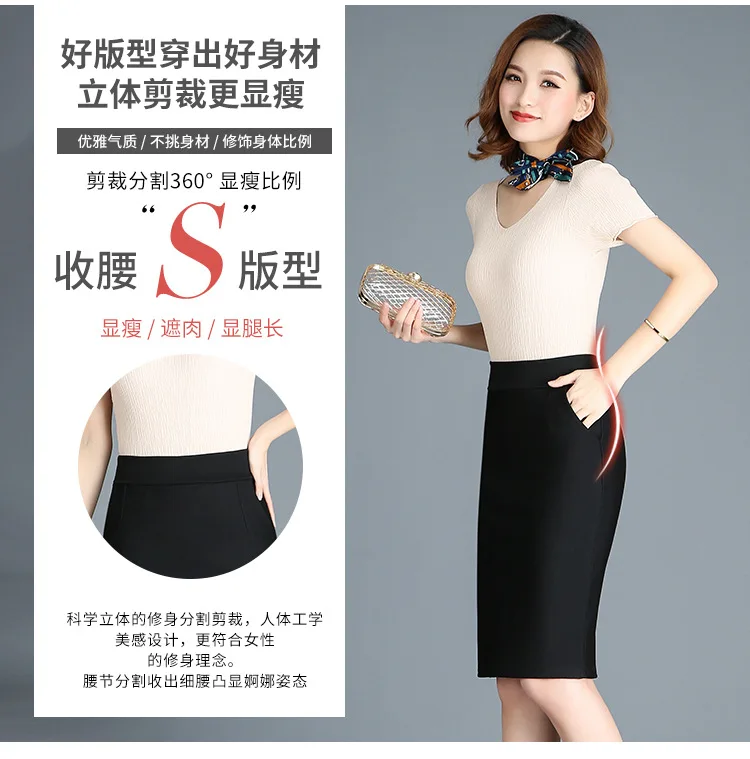 Женский офисный костюм с юбкой, черная эластичная офисная юбка с высокой талией и разрезом сзади, короткая юбка, Новое поступление в Корейском стиле на весну 2022