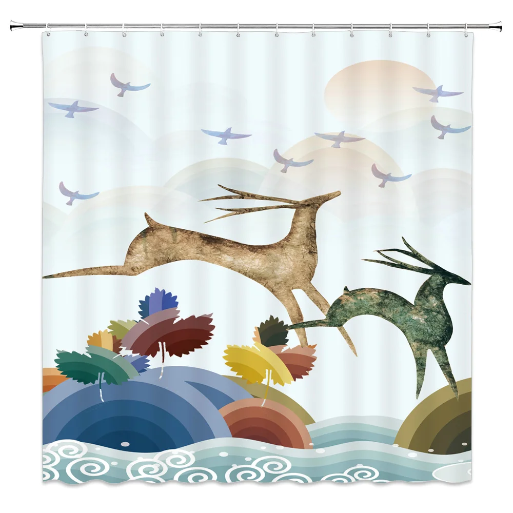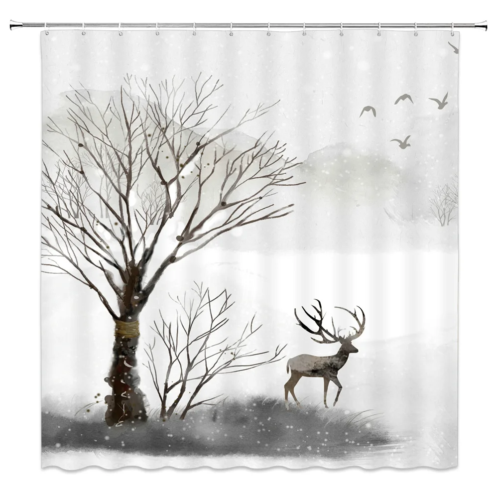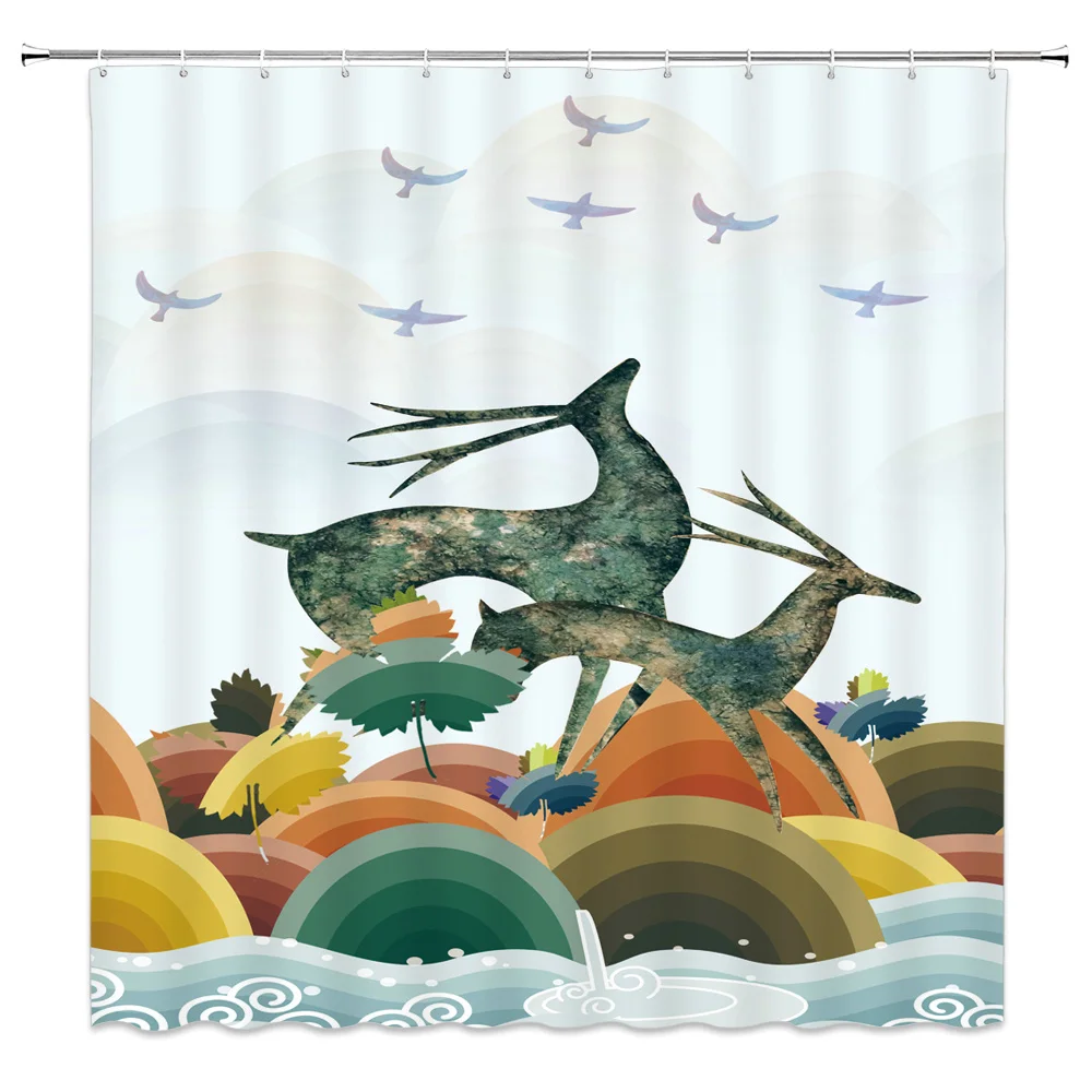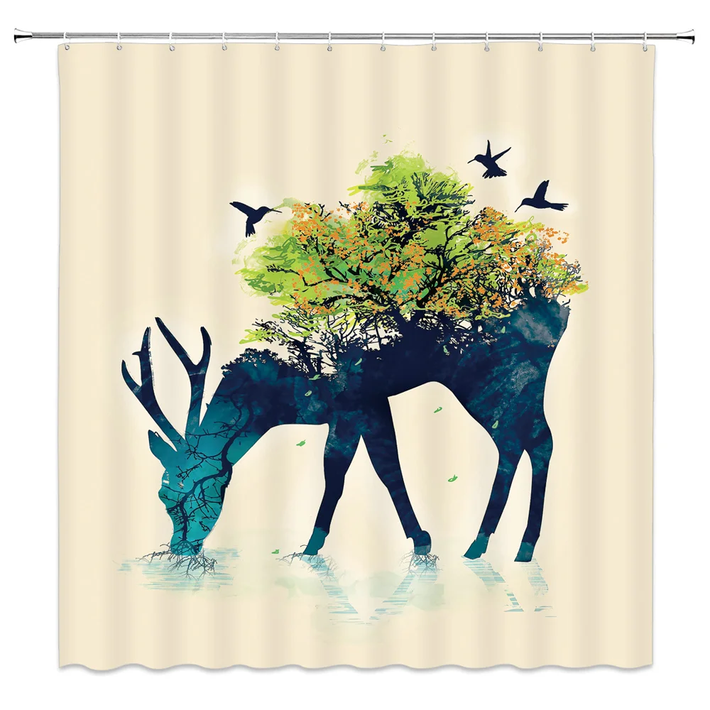 Занавеска для душа с оленем, водонепроницаемая Полиэстеровая ткань, экологически чистая душевая занавеска 150*180 см и 180*180 см, украшение для дома