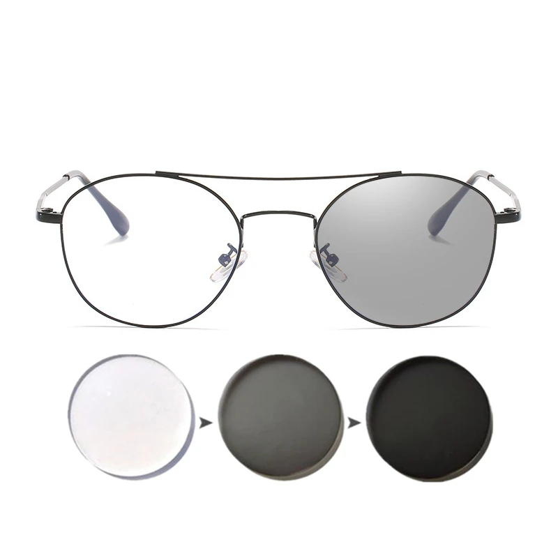 Это aФотохромныеОчки по рецепту дляБлизорукостьЛинзы будут прозрачными и бесцветными в помещении или в темных местах, но они изменят цвет на открытом воздухе или на солнце, чтобы защитить ваши глаза от сильного светильник.