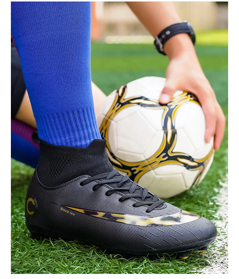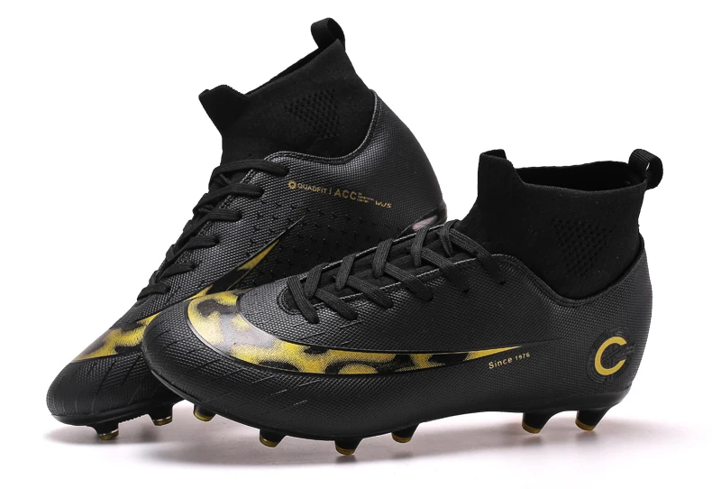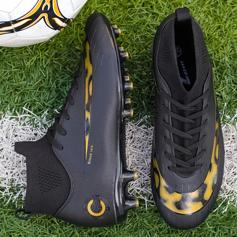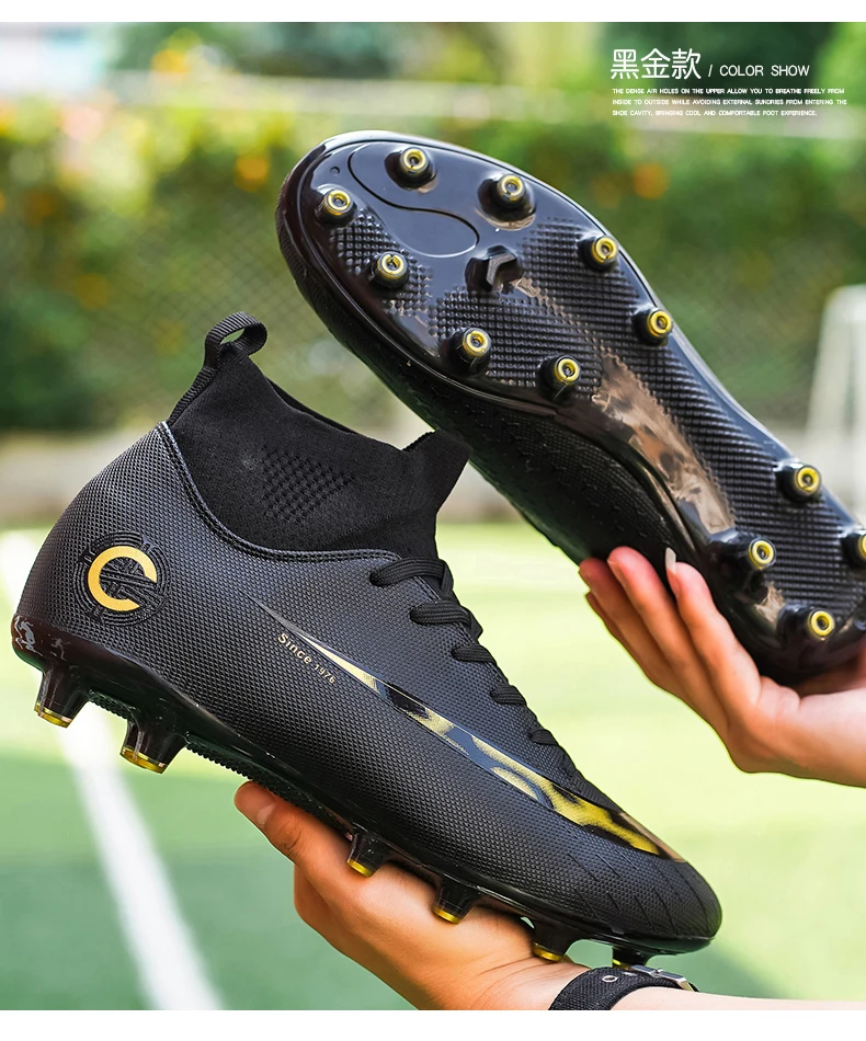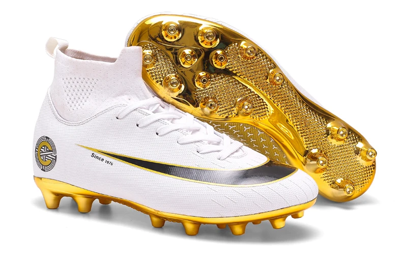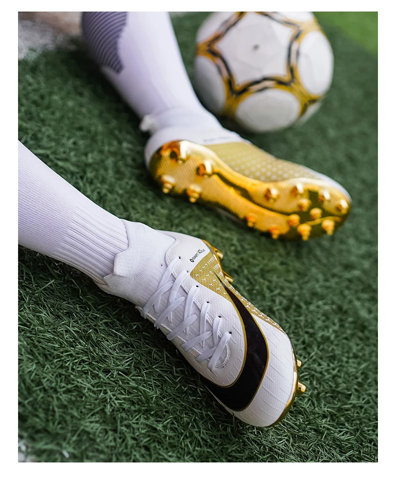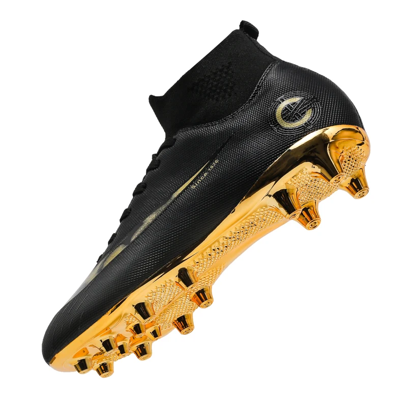 Уникальные новые мужские футбольные туфли с золотой подошвой Детские уличные туфли TFAG с длинными шипами кроссовки размер 35-45 Дышащие Высокие шипы