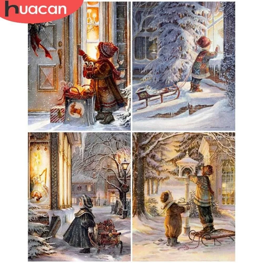HUACAN картина по номерам на холсте девушка рисование по номерам акрил зима Рождественский подарок Декор детской комнаты