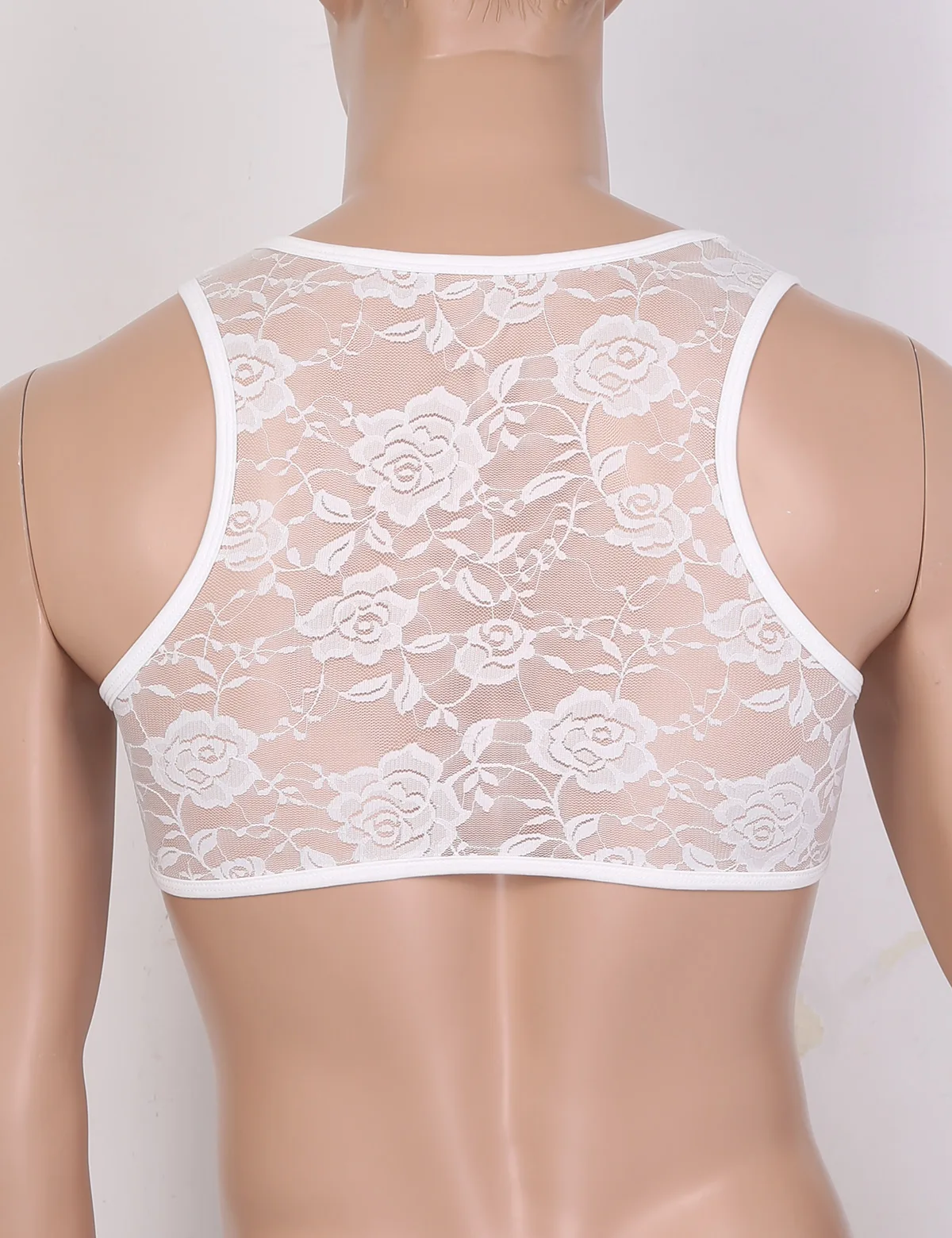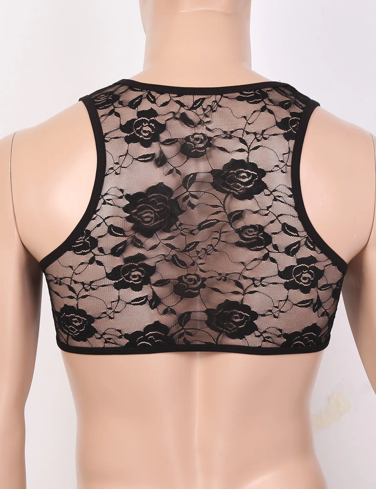 Прозрачное кружевное белье в цветочек для мужчин, стрейчевый мини-жилет с потертостями, топы, эротический прозрачный укороченный топ Babydoll для геев, одежда для сна для трансвеститов