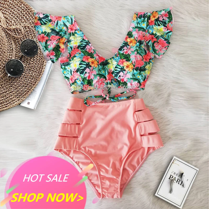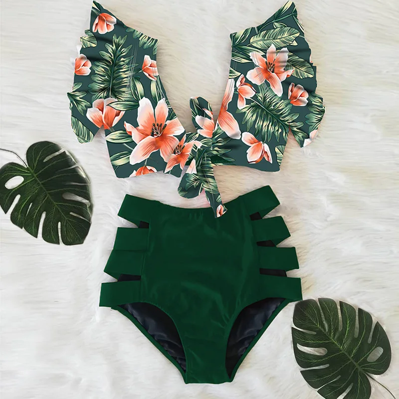 Женский раздельный купальник с цветочным принтом, бикини с оборками...