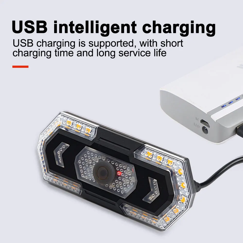 1. Широкий визуальный диапазон.2. Легко установить.3. Используйте встроенную перезаряжаемую батарею in500mAh; Время подъема: 4-5 часов4. Внешний водонепроницаемый эффект достигает IPX2, гарантия ежедневного использования.5. Высококачественный светодиодный, гарантирующий предупредительный эффект.6 Предупреждение ющий светодиодный: красный и синий мигающий