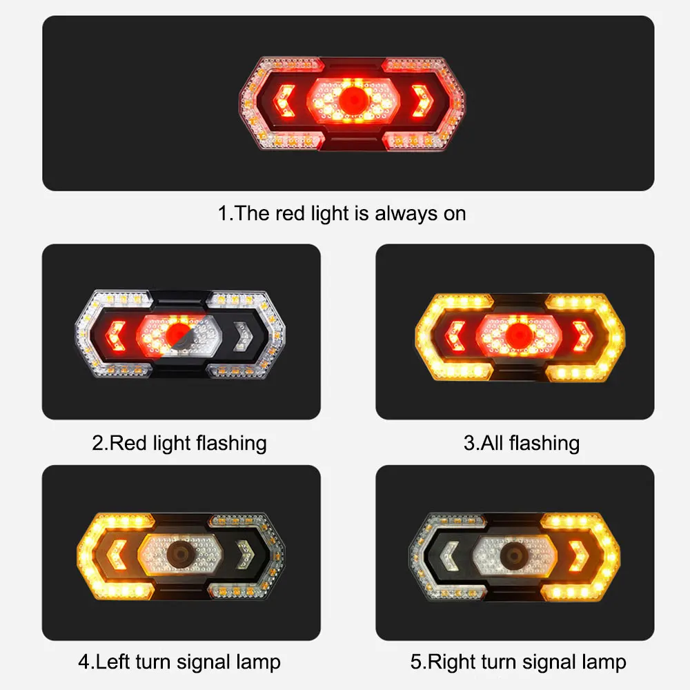 1. Пульт дистанционного управления: в общей сложности 3 кнопки1) Левая клавиша поворота: Нажмите Левую кнопку поворота, индикатор кнопки мигает, а задний левый индикатор поворота мигает, а затем нажмите кнопку, чтобы выключить светильник индикатора.2) Правая клавиша поворота: Нажмите правую кнопку поворота, индикатор кнопки мигает, а задний правый индикатор поворота мигает, а затем нажмите кнопку, чтобы выключить светильник индикатора3) Светодиодный светильник: Нажмите кнопку светодиодный, индикатор кнопки всегда включен, и красный светильник всегда включен. Пресс в светодиодный Кнопка снова, кнопка светильник не начнет мигать, а красный светильник в задней части светильник мигает. Пресс в светодиодный кнопку в третий раз, и выключите красный светильник на хвосте светильник2. Задний светильник s: кнопка переключения, красный светодиодный предупреждающий светильник, желтый светодиодный светильник-индикатор.