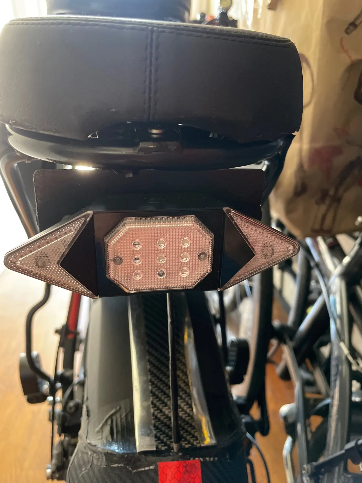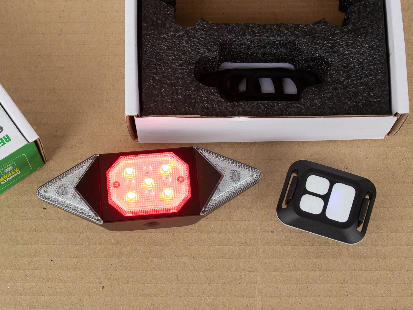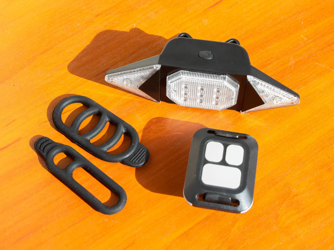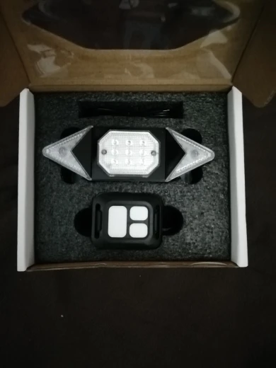 1 * задний фонарь1 * пульт дистанционного управления1 * USB кабель для зарядки2 * монтажное основание2 * облицовка