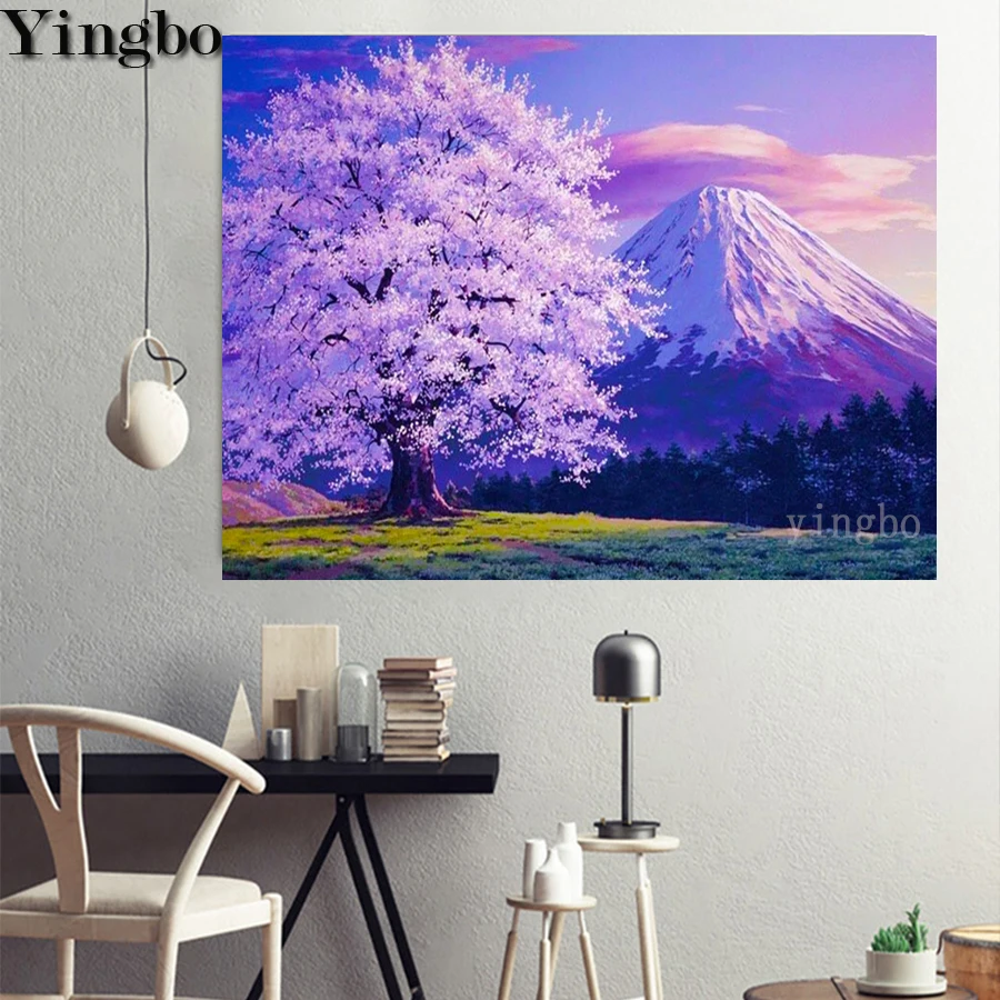 Алмазная живопись с цветами вишни, Гора Фудзи, набор для алмазной вышивки 5D, пейзаж, Набор для вышивки крестиком, 2020