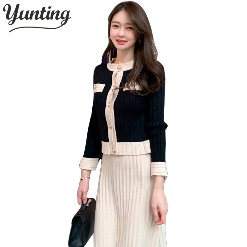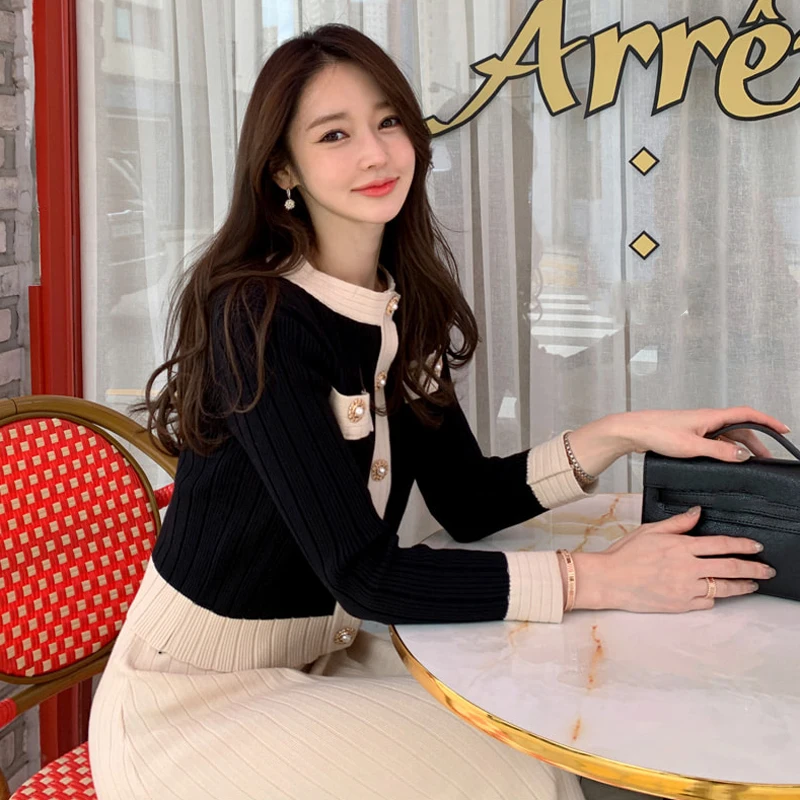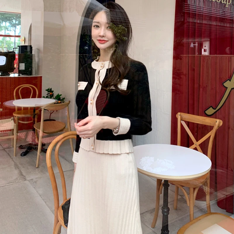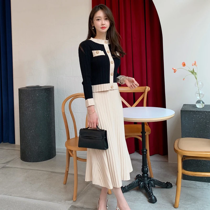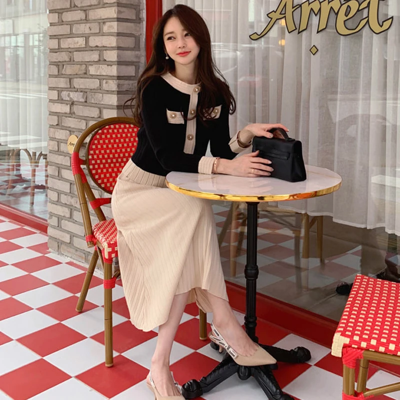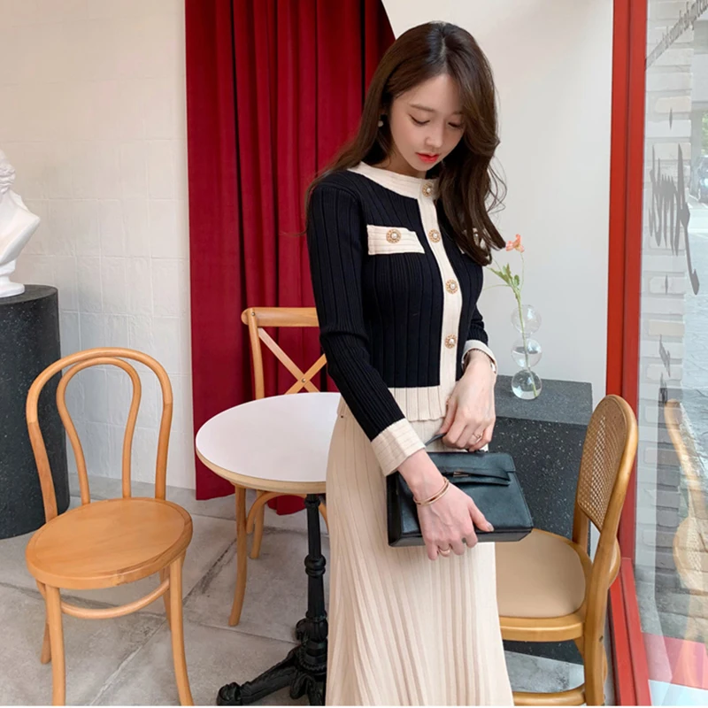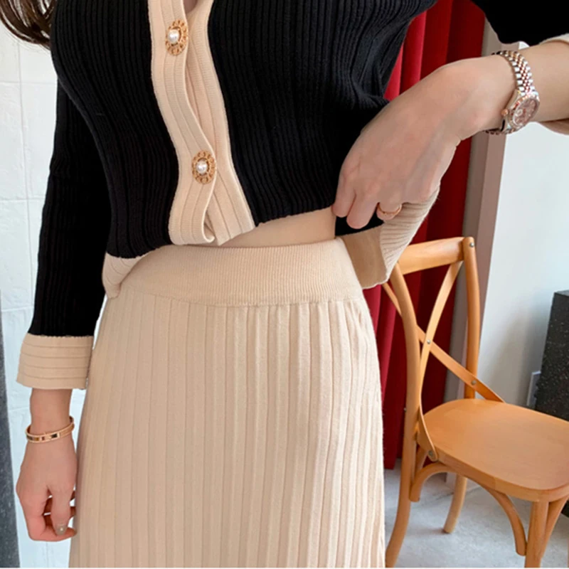 Женский трикотажный костюм-двойка, Кардиган с длинным рукавом и эластичная талия, осень 2020