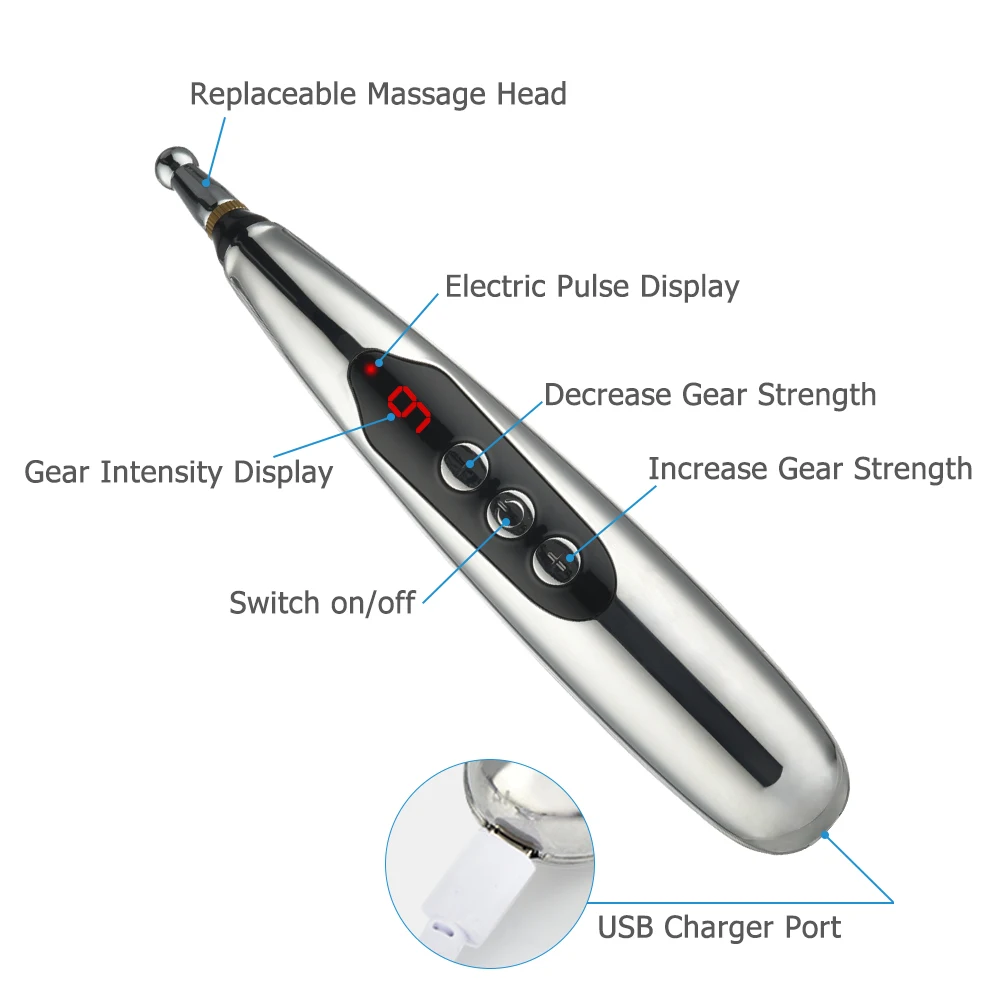 Электронная ручка для иглоукалывания с зарядкой от USB, 5 головок