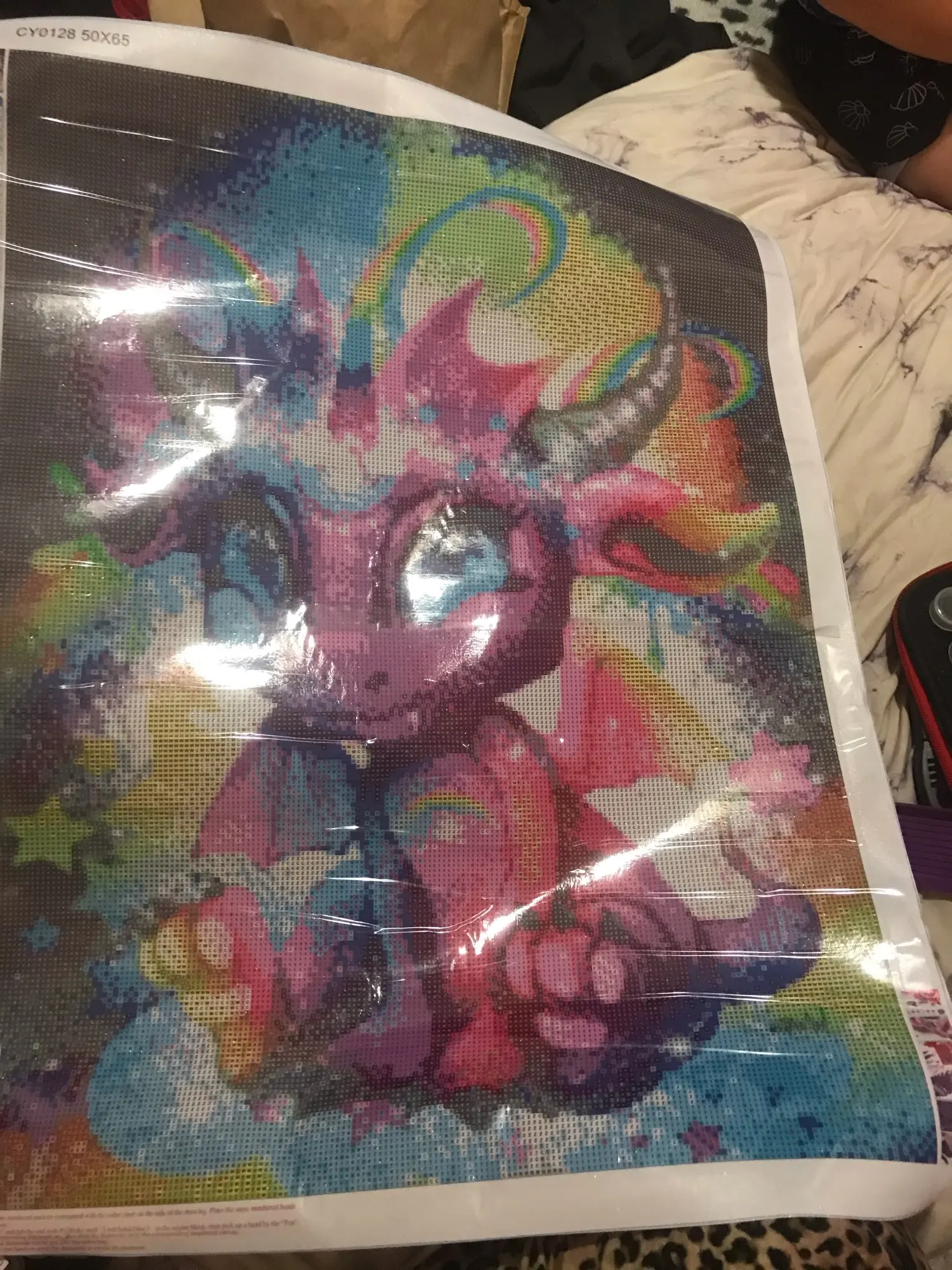 Я получил свой заказ, но был разочарован, увидев, что он был отправлен только в обернутом пластике, и Он ползет по всей поверхности, поэтому я постараюсь сохранить его плоским и проверить, поможет ли это. Но сам принт был красивым с четкой маркировкой и всеми алмазами там, где это было. Я просто хочу, потому что он был больше, он был отправлен в коробке.