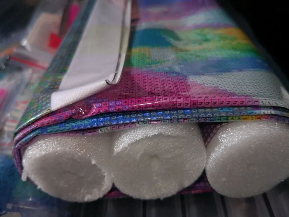 Это идеально. Он пришел на Поролоновый валик, который защитил холст. Он выливается клеем, который имеет много преимуществ. Символами являются цифры и буквы. Они ясны и легко видны. Клей липкий. Стразы в мешках с замком на молнии. Изображение четкое и очень милое. Мне нравится. Настоятельно рекомендую продавцу.