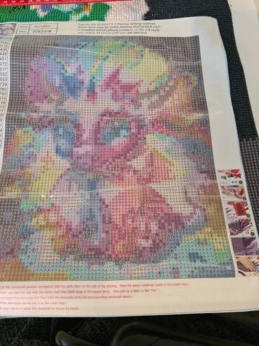 Я очень доволен этой росписью. Размер подходит для этого рисунка. Стразы хороши (31 цвет) и поставляются в пакетах. Вы не можете проверить, достаточно ли поставлено, потому что нет контрольного листа при доставке. Доставка занимает больше времени, чем китайский Новый год.