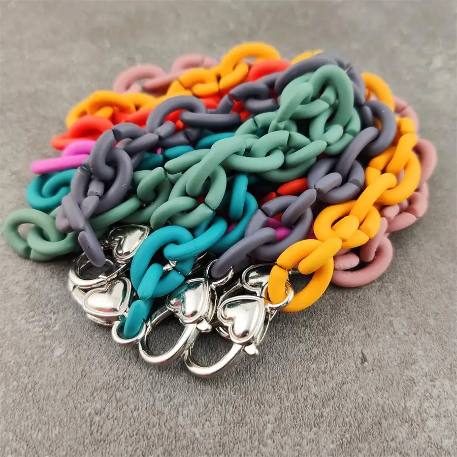 Модные Акриловые толстые плоские звенья, резиновые позолоченные бра...
