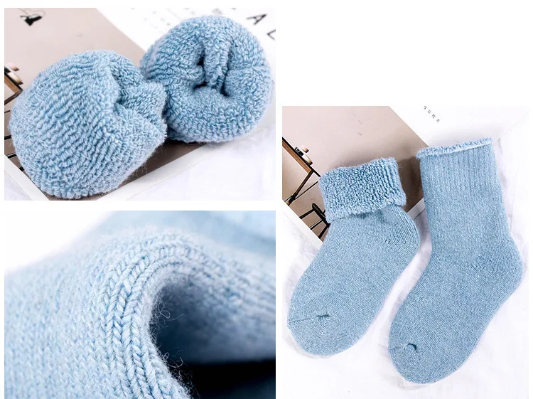 Толстые детские носки из натуральной шерсти зимние мягкие теплые носки для детей, От 0 до 7 лет носки-тапочки для мальчиков и девочек
