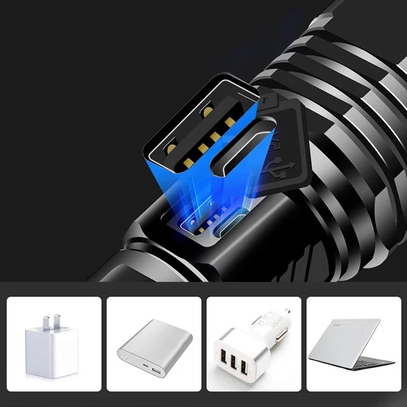 Светодиодный фонарик XHP199, 1000000лм, USB, перезаряжаемый аккумул...