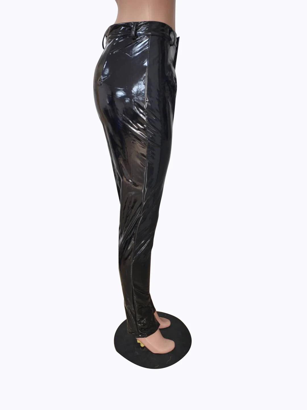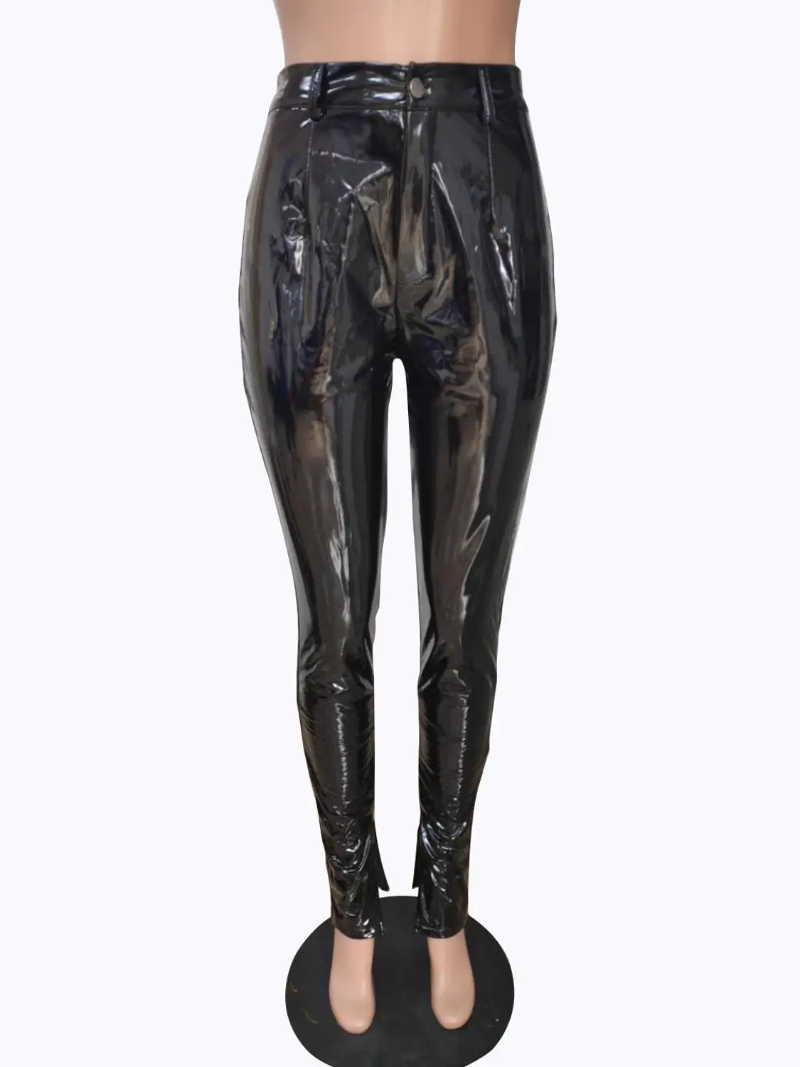 Эротичные облегающие обтягивающие брюки-карандаш из ПУ кожи на молнии