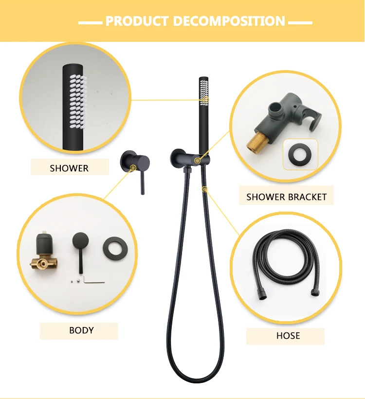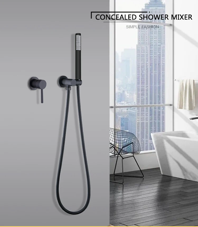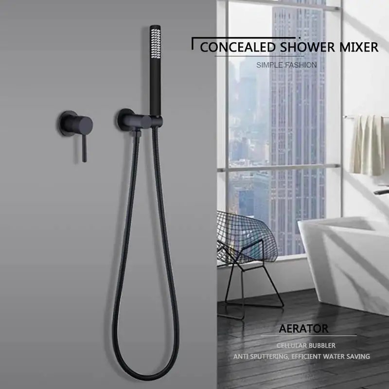 Матовый черный смеситель для душа, скрытый настенный встраиваемый смеситель для душа в ванную комнату, ручная насадка для душа, черная латунь