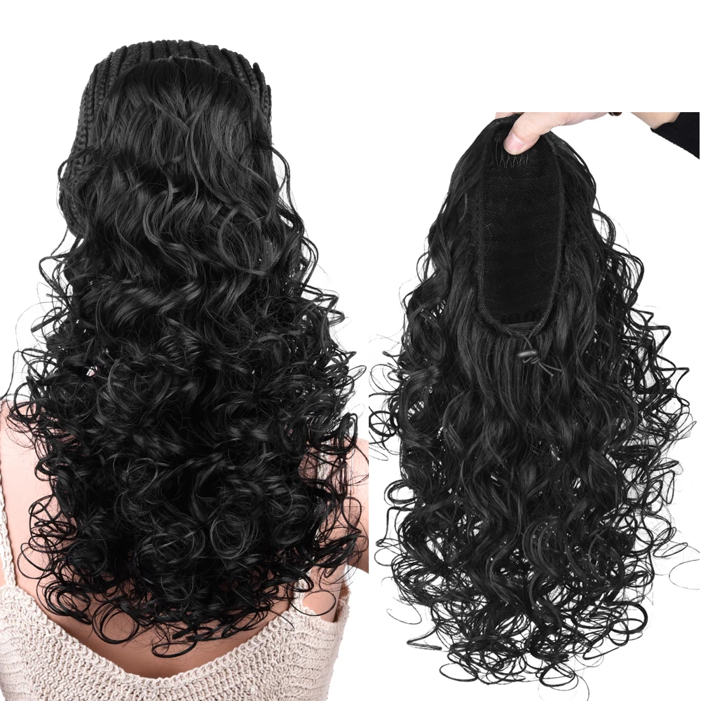 Силиконовый хвост для наращивания на шнурке 18 дюймов афро кудрявые волосы для конского хвоста синтетические волосы на заколке для конского хвоста афроамериканские волосы