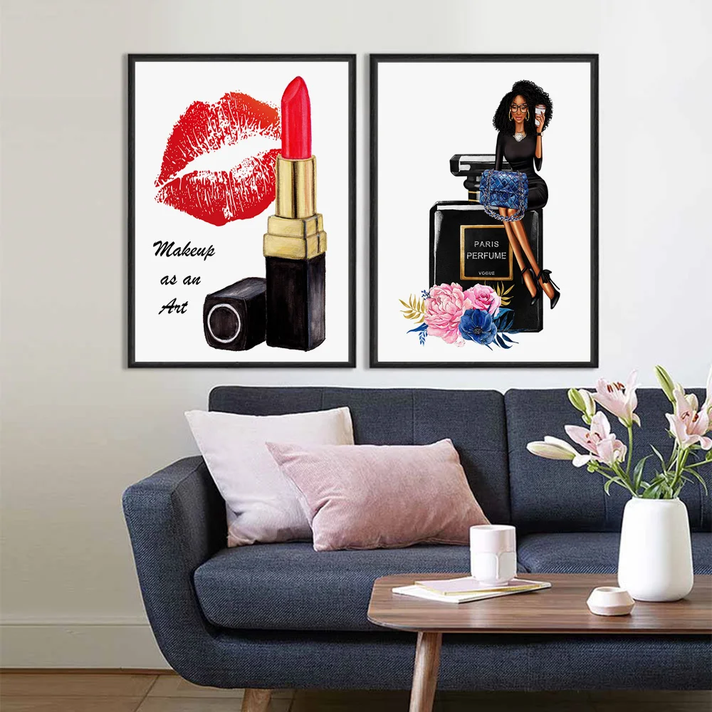 Модная девушка Париж духи губная помада цветок настенная живопись Алмазная Скандинавская вышивка плакаты и мозаичные принты настенные фотографии