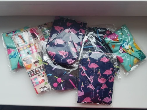 пришло до Калининграда за 20 дней. всё как на картинке - и в количестве, и в материале (внутри микрофибра, тыльная сторона отделана мягким фетром, наружняя - что-то похожее на плащевку). сщито аккуратно, присутсвует регулировка. в отличии от пластиковых одноразовых прокладок не протекают даже в самые обильные на выделения дни (не для спорта конечно, но! для спорта естб менструальные чаши). продавца рекомендую! буду заказывать ещё:)