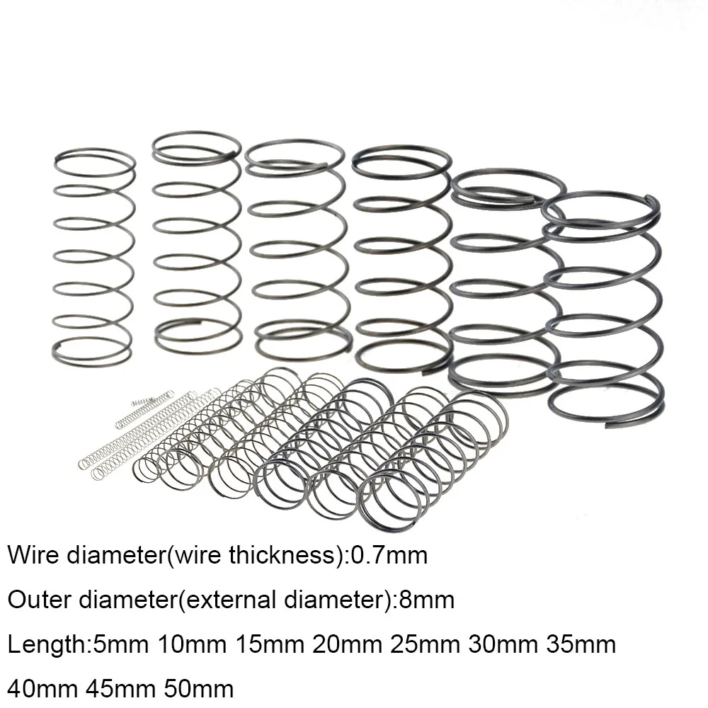 Пружина 0,7*8*5-50 мм, пружинная стальная, небольшая, сжатие, механическая возвратная пружина, внешний диаметр 8 мм, 0, 7x8x5-50 мм, 10 шт.
