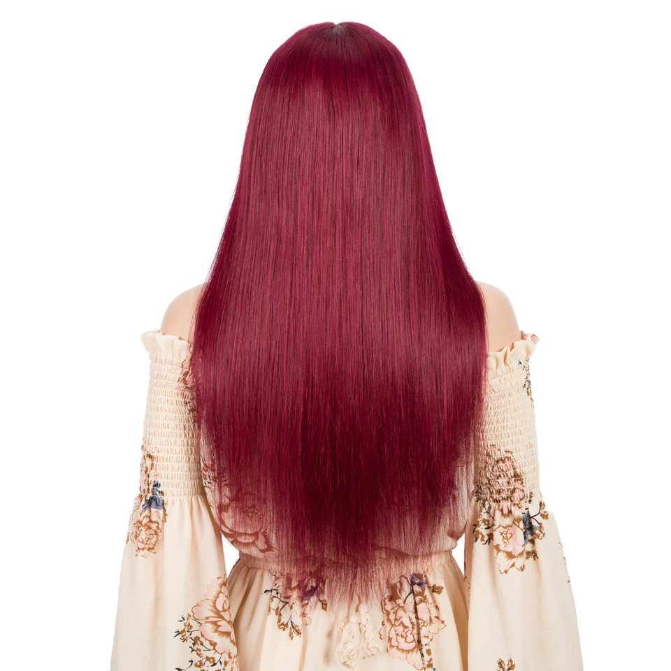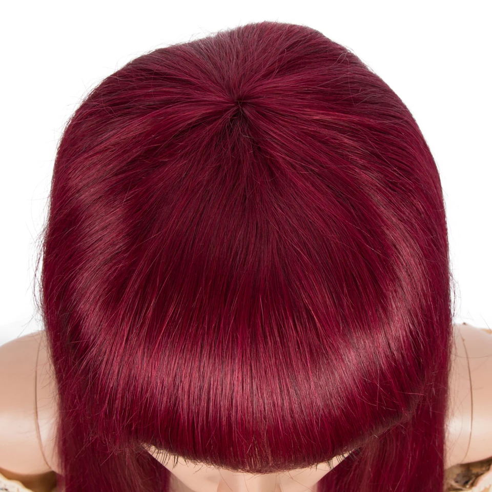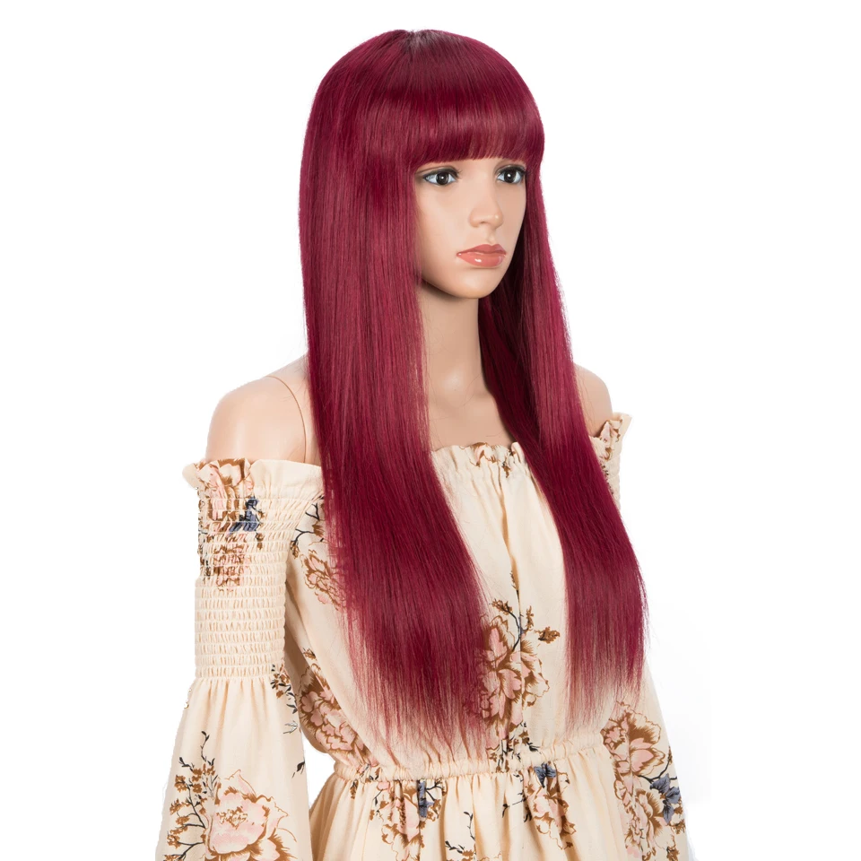 Парики из человеческих волос Remy Forte, 28 дюймов, красные прямые волосы, парики с челкой для женщин, цветные бразильские волосы, натуральный парик для косплея, Боб