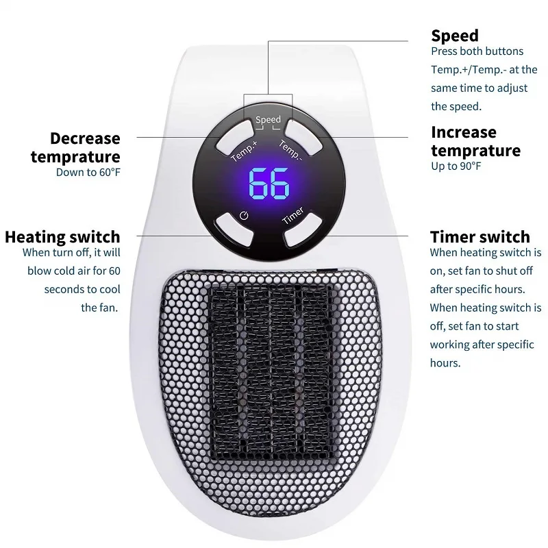 PTC керамический элемент, быстро и легко нагревается, сохраняя тепло в холодную зиму. Встроенная функция таймера (1-12 часов), идеально подходит для предварительного нагрева комнат. Поддержка 15 ℃ ~ 32 ℃ температуры. Автоматическое отключение при достижении температурного режима, чтобы избежать несчастных случаев, безопасно и надежно. С 2 скоростями, легко настроить его на основе ваших реальных потребностей. Поставляется с пультом дистанционного управления для удобного управления. Простота в использовании, подходит для использования дома или в офисе.