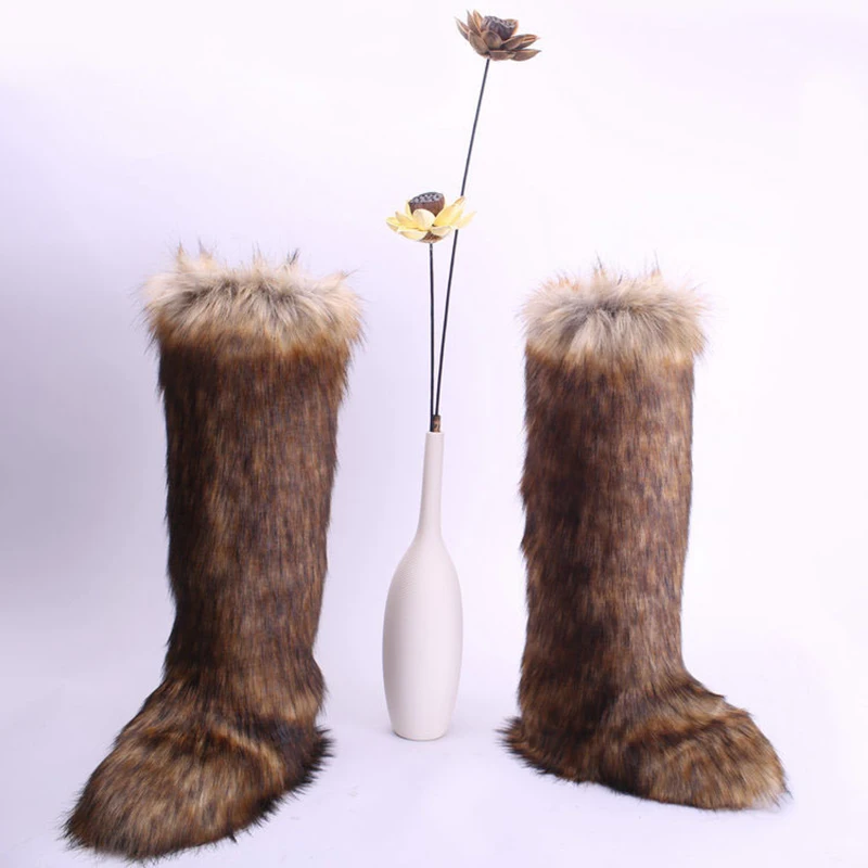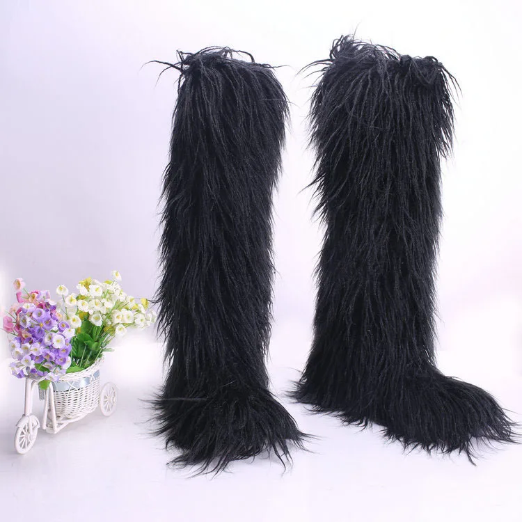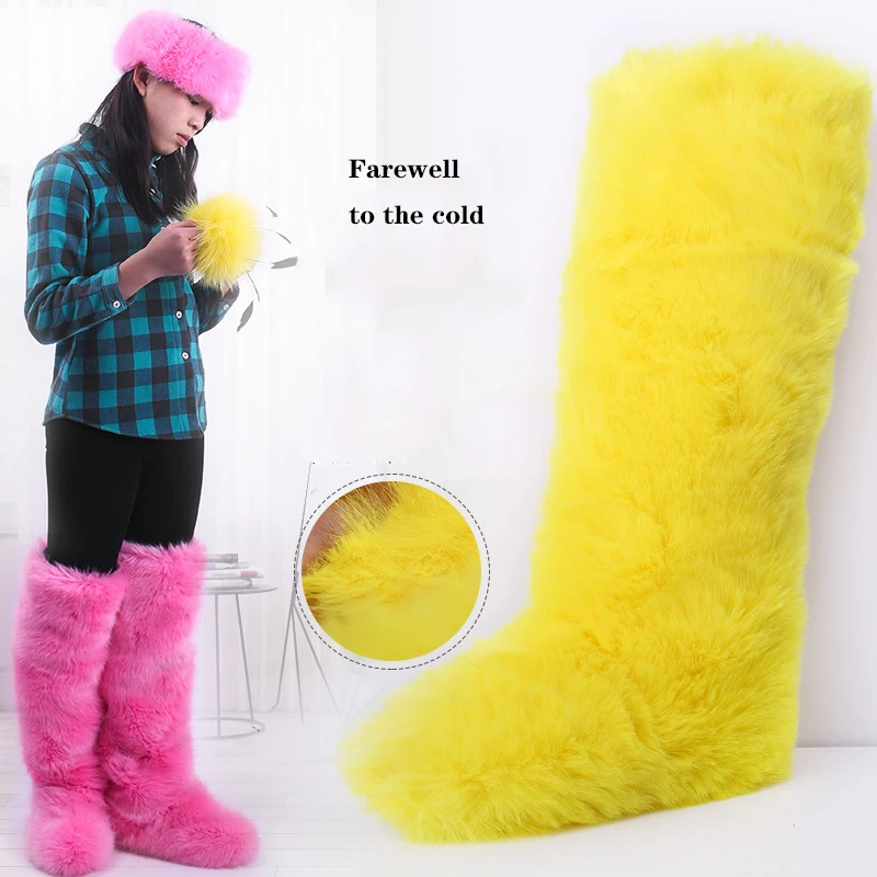 Зимние женские персонализированные плюшевые сапоги до колена, модные сексуальные женские сапоги из искусственного меха, уличная женская теплая холодная обувь
