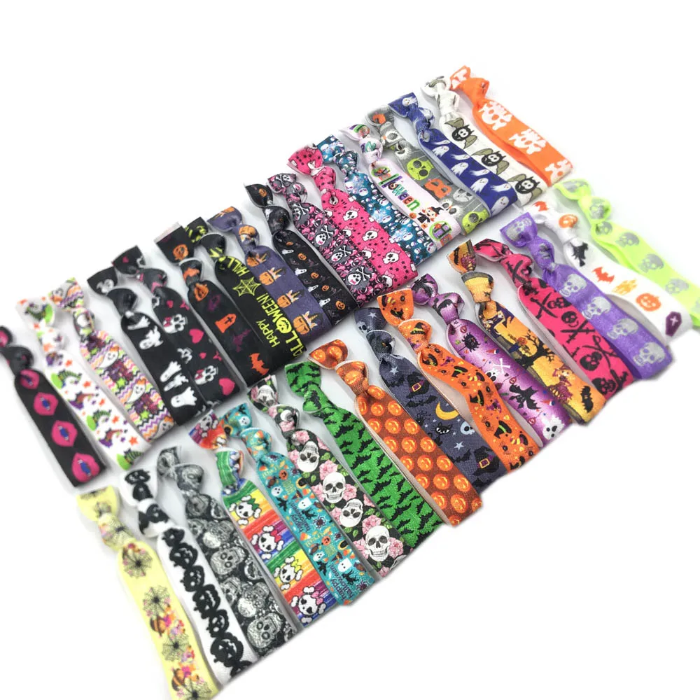 Резинка для волос на Хэллоуин, эластичная резинка для волос с изображением тыквы, летучей мыши, черепа, призрака, хвоста, Красного оленя, 100 шт.лот, разные цвета