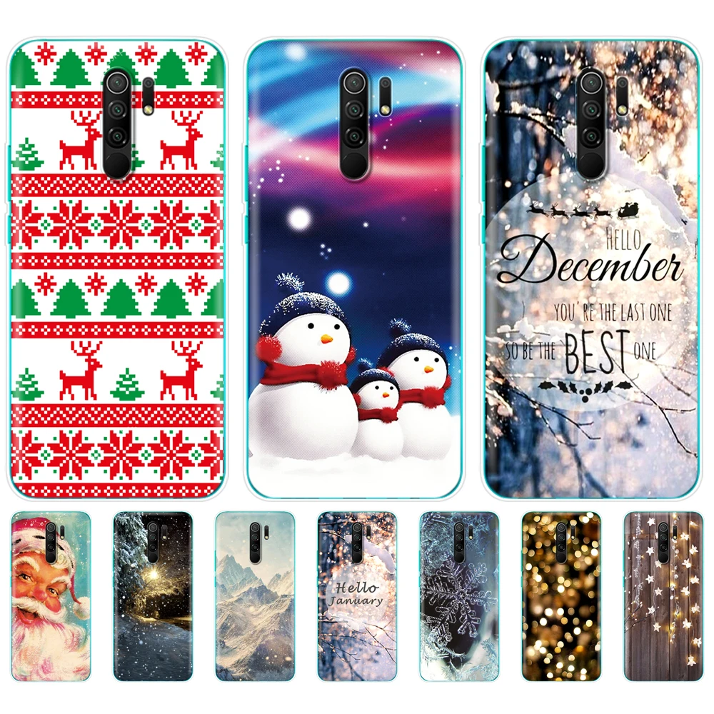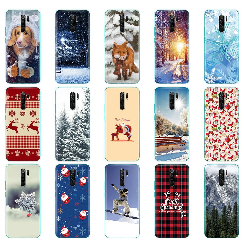 Чехол для телефона xiaomi redmi 9, мягкий чехол для redmi 9, 6,53 дюйма, чехол-бампер, противоударный, зимний, снежный, Рождественский, с новым годом