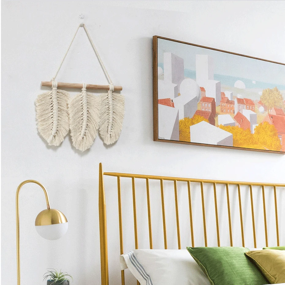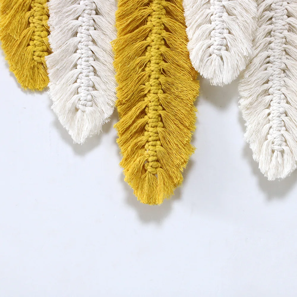 Новый дизайн подвески в виде листьев перьев гобелен из макраме настенный богемный домашний декор шикарное художественное ремесло Тканый гобелен настенный Декор