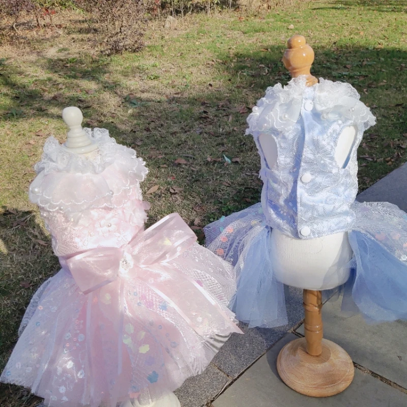 Женская зимняя одежда для собак, милый кружевной жемчужный женский ...