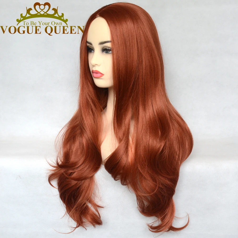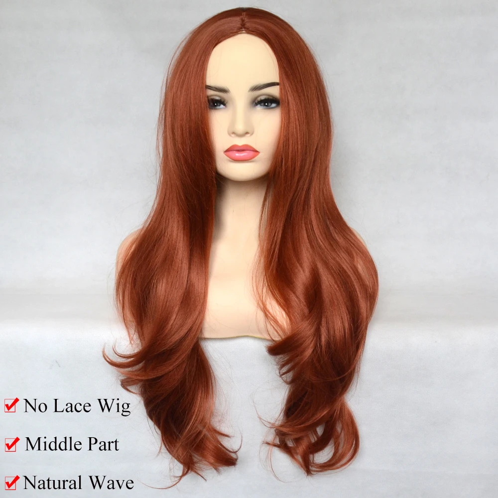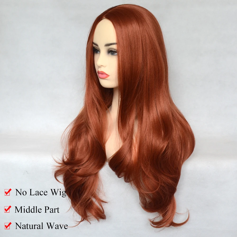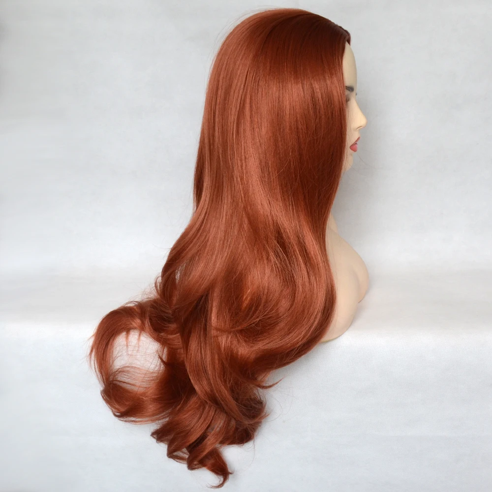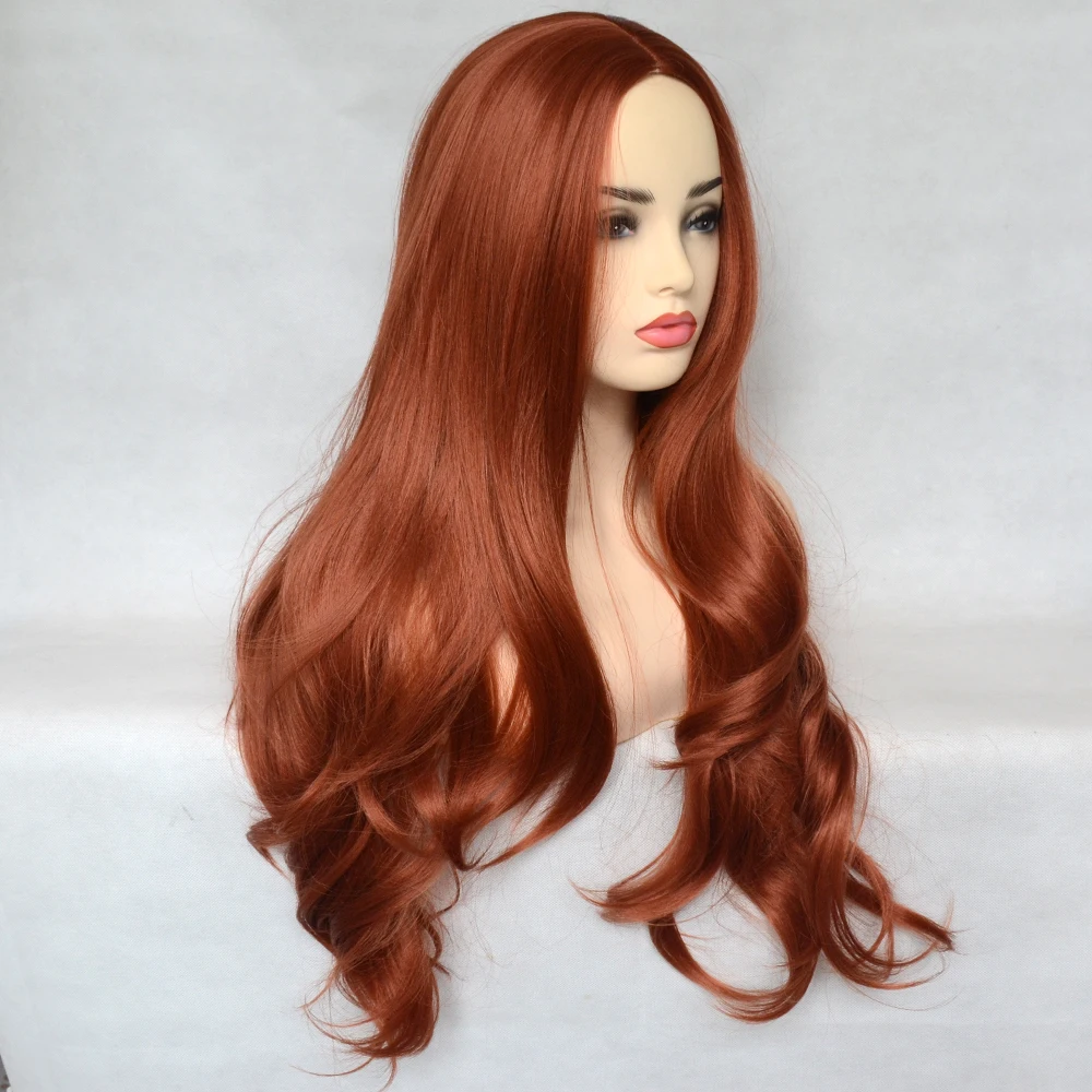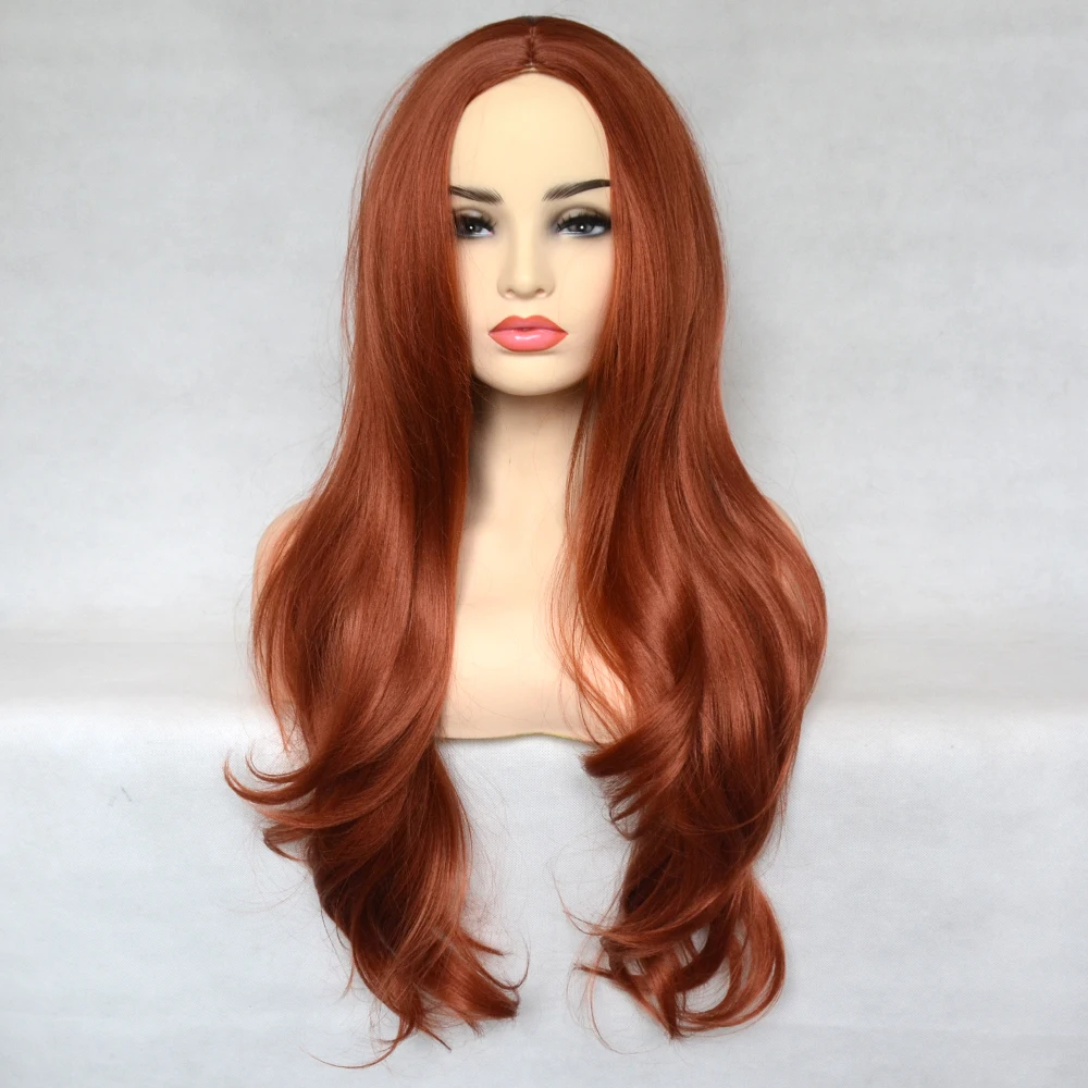 Парик женский, медный, красный, синтетический, с естественными волнами