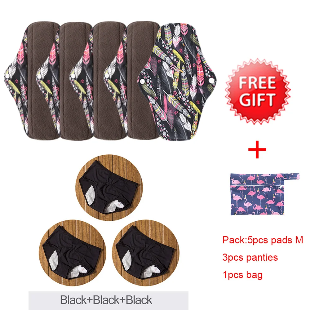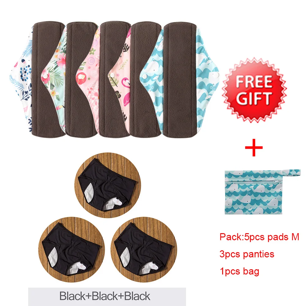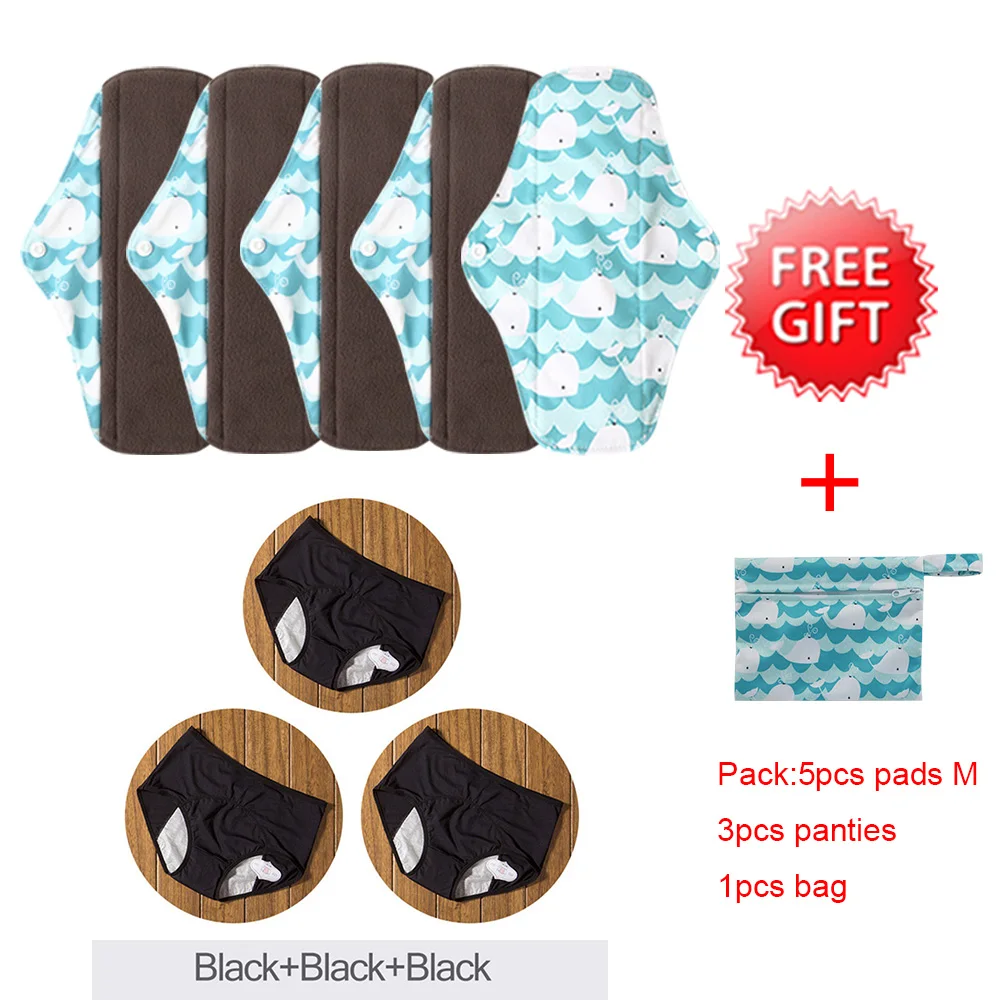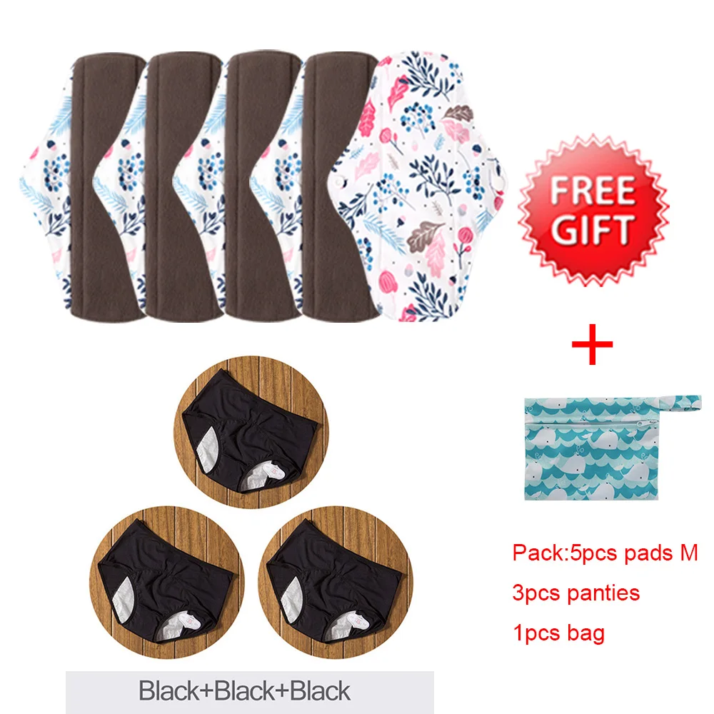 5 шт./Набор моющийся санитарный бамбуковый коврик размер М с 3 шт. менструальные трусики женские сексуальные штаны герметичное нижнее белье для недержания