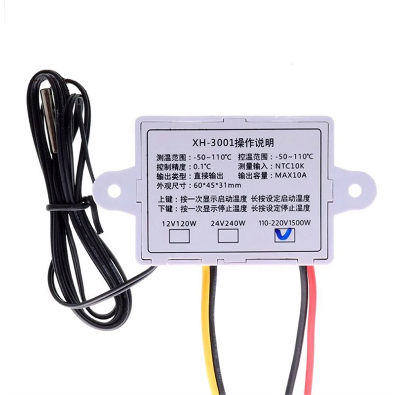 Цифровой светодиодный регулятор температуры, 12 В, 24 В, 220 В переменного тока, XH-W3001 для инкубатора, охлаждающий нагревательный переключатель, термостат, датчик NTC
