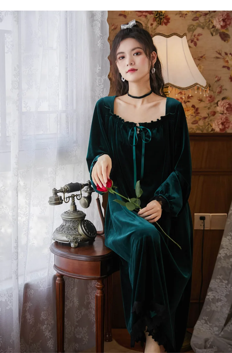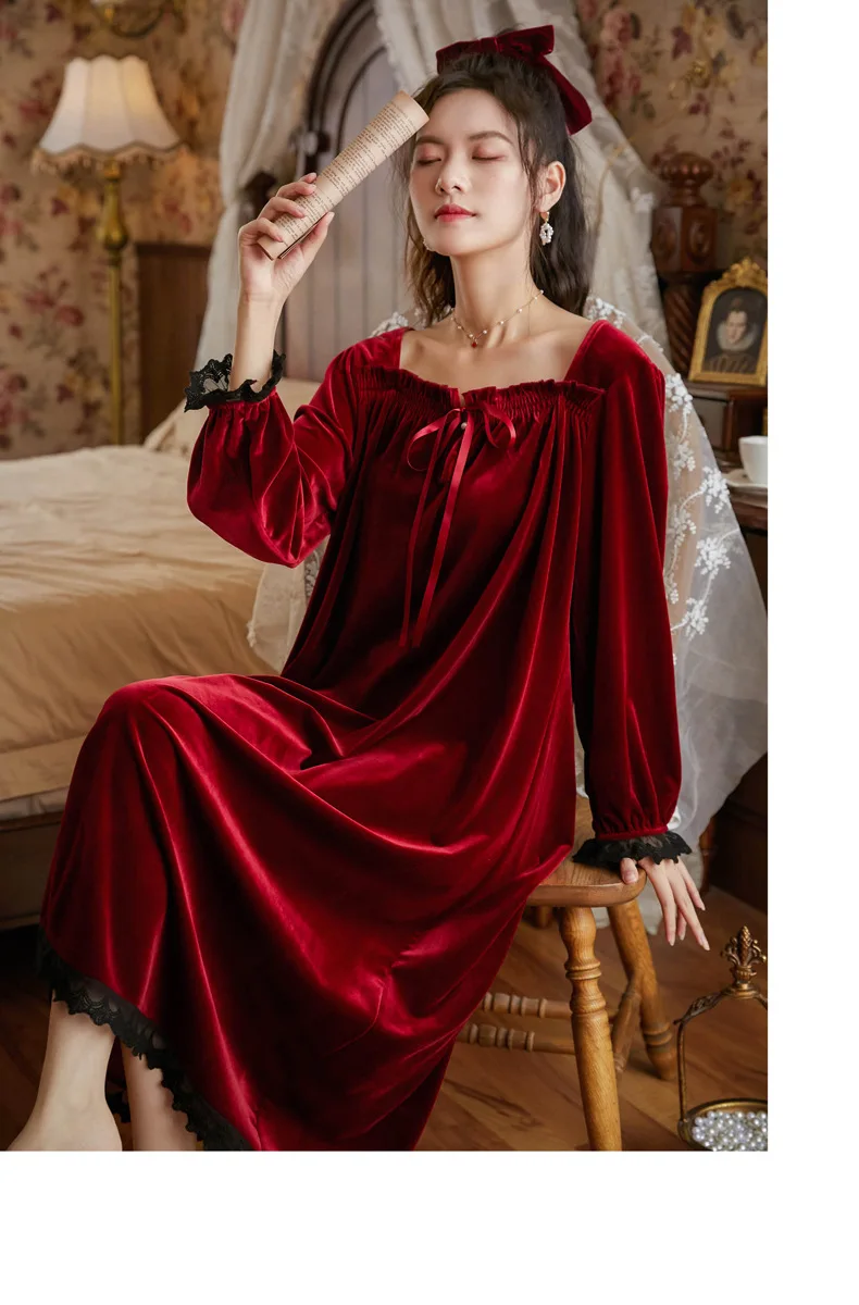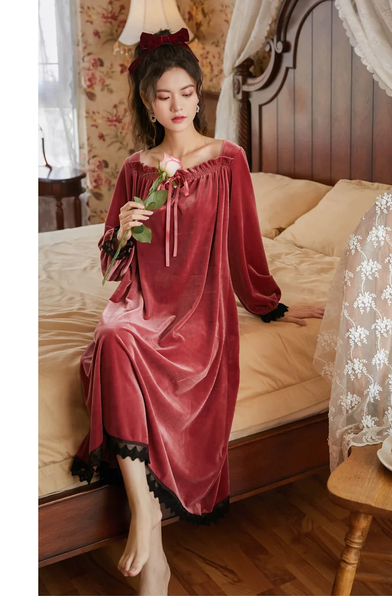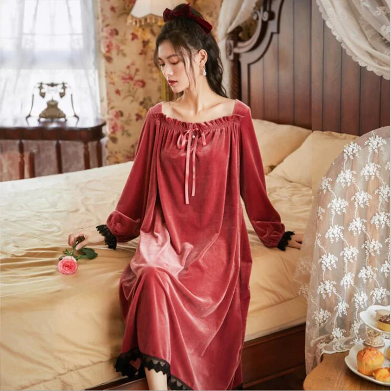 Распродажа, женская зимняя длинная ночная рубашка, пикантная бархатная ночная рубашка с квадратным вырезом, свободная теплая ночная рубашка с длинными рукавами, винтажное платье