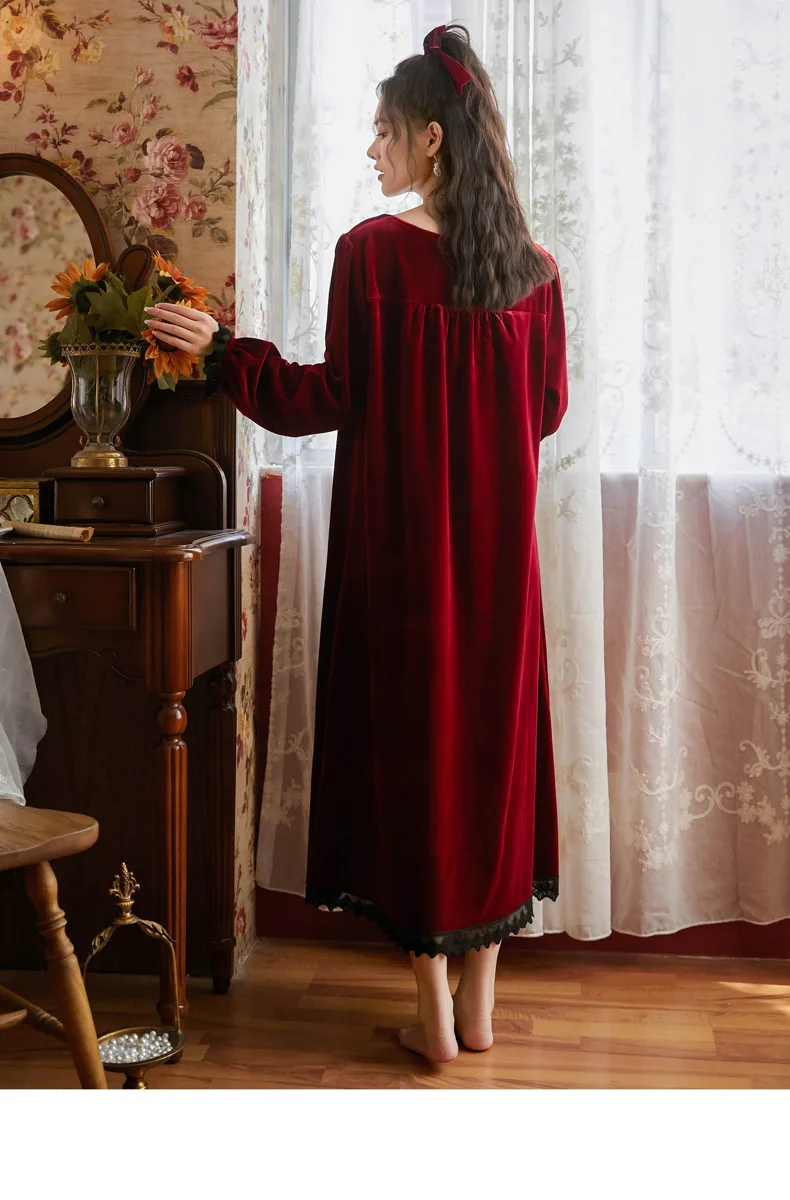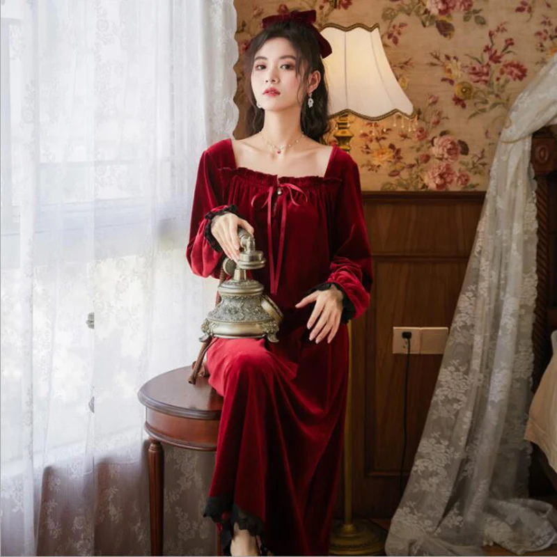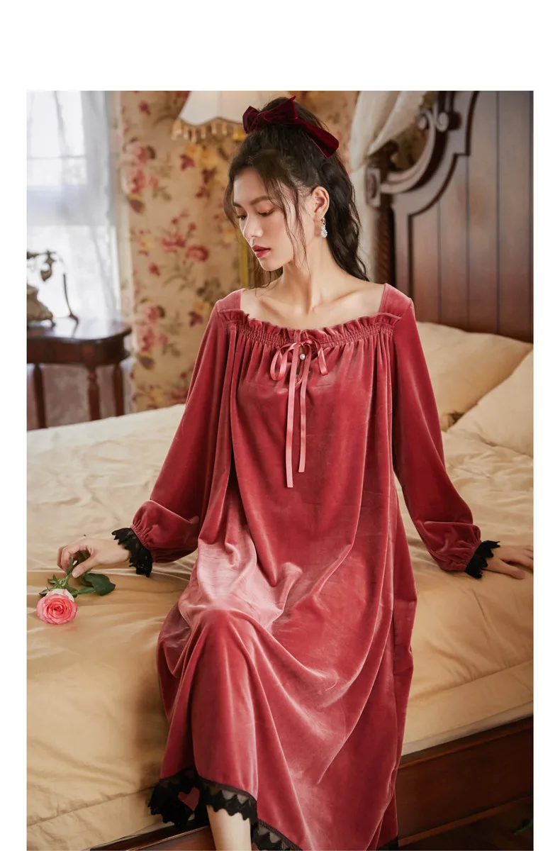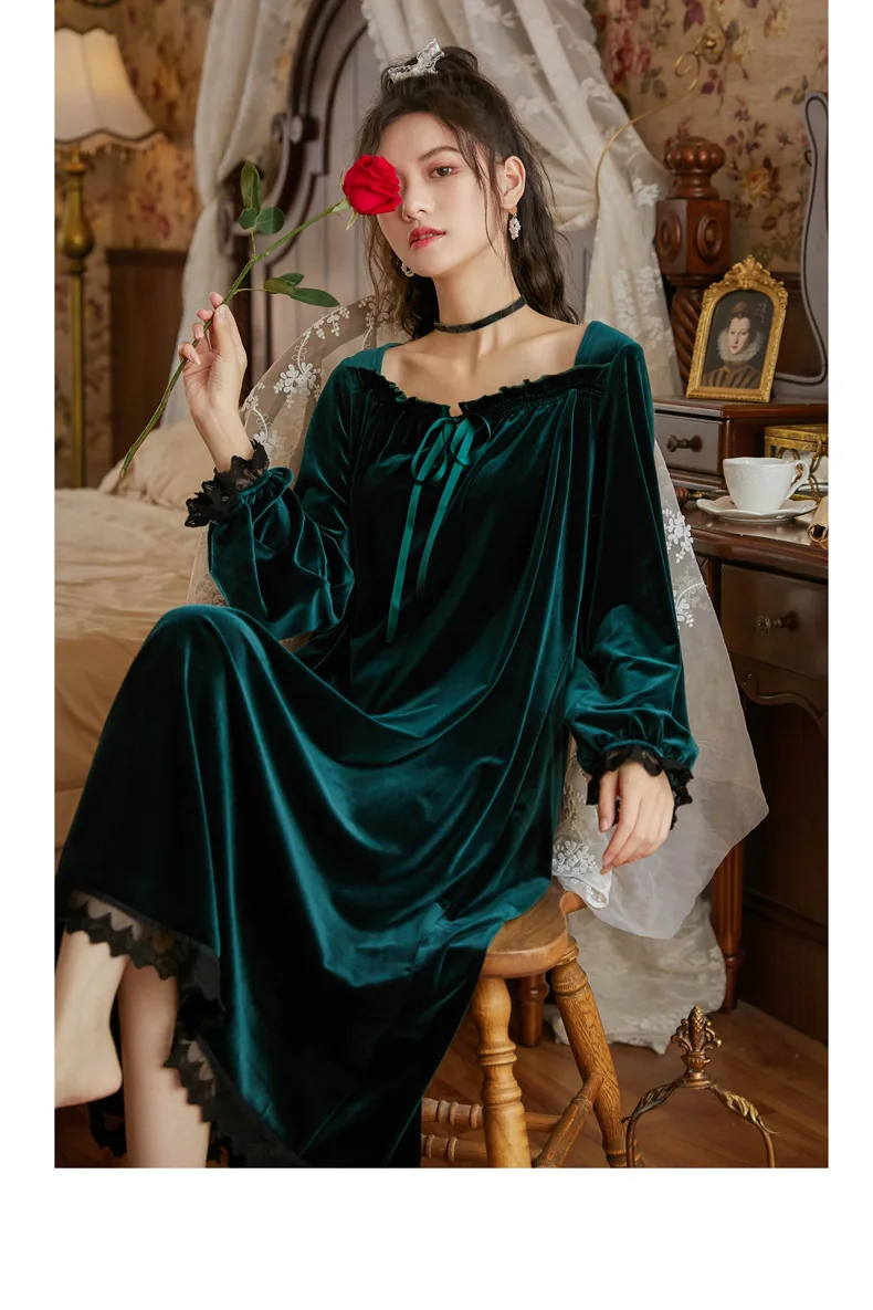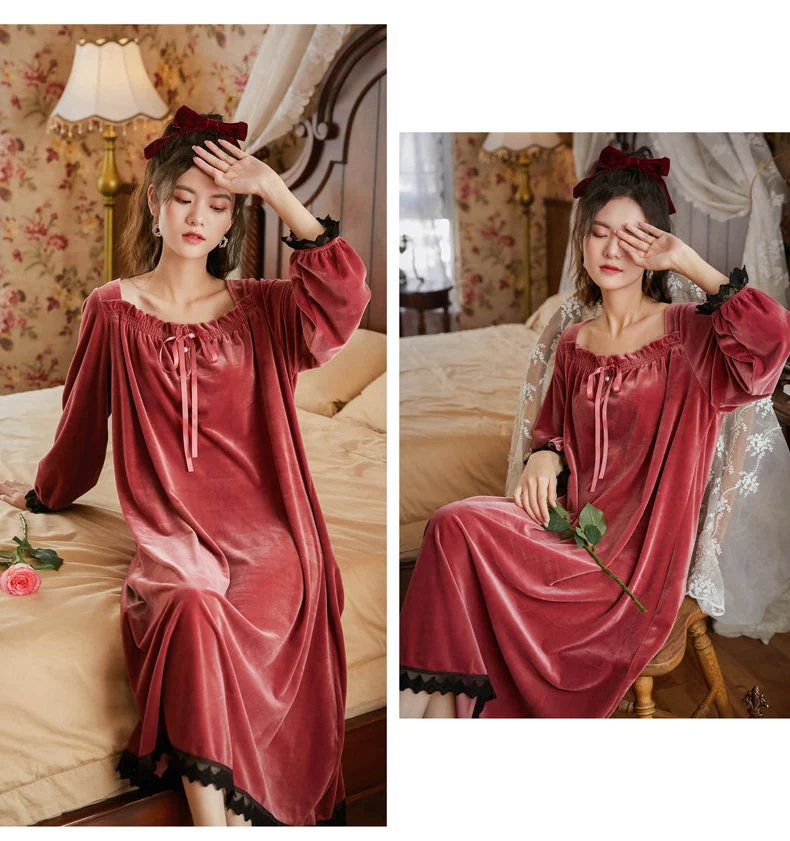Распродажа, женская зимняя длинная ночная рубашка, пикантная бархатная ночная рубашка с квадратным вырезом, свободная теплая ночная рубашка с длинными рукавами, винтажное платье