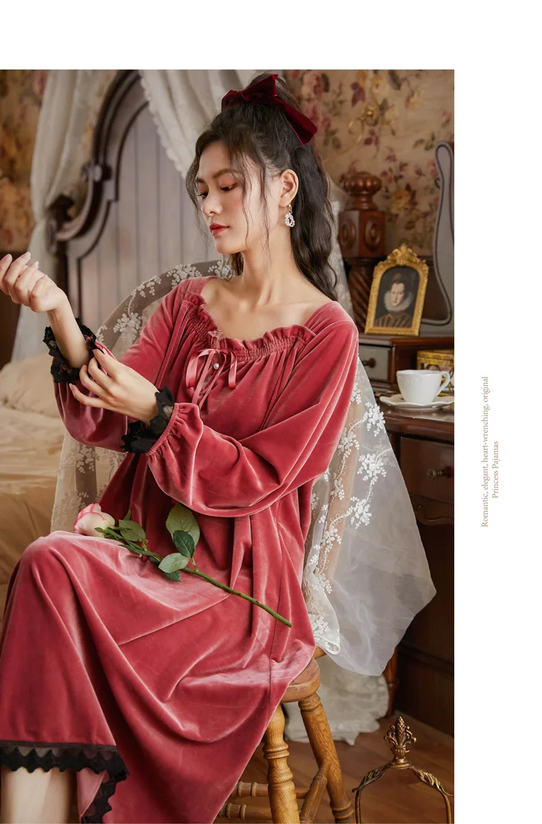 Сексуальная Женская велюровая Ночная рубашка в дворцовом стиле, кру...